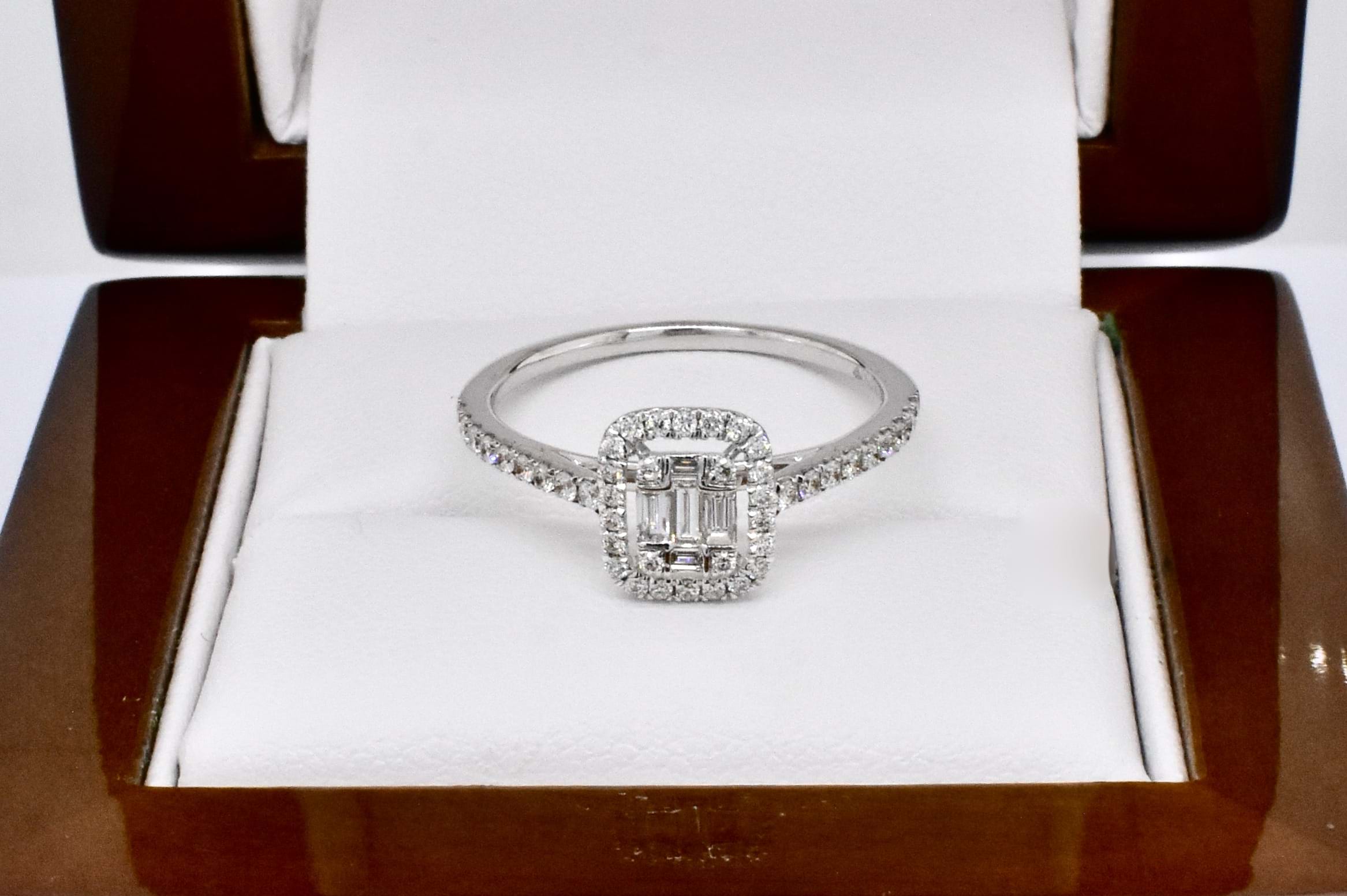 SOLD 18ct White Gold 0.40ct Baguette & Round Diamond Illusion Ring (M+)