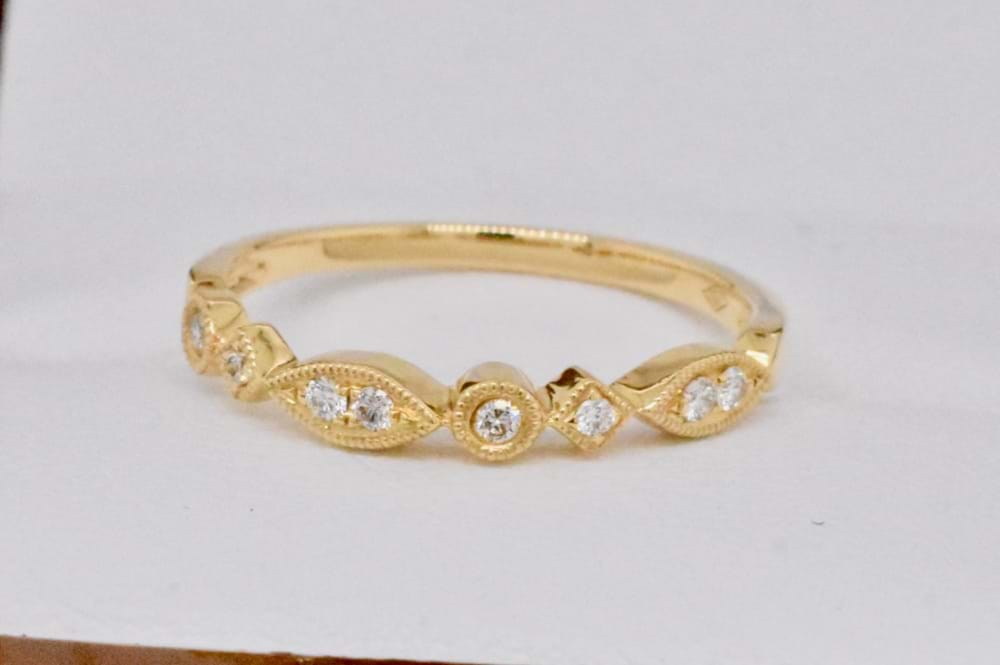 SOLD 18ct Yellow Gold Deco Diamond Stackable Band