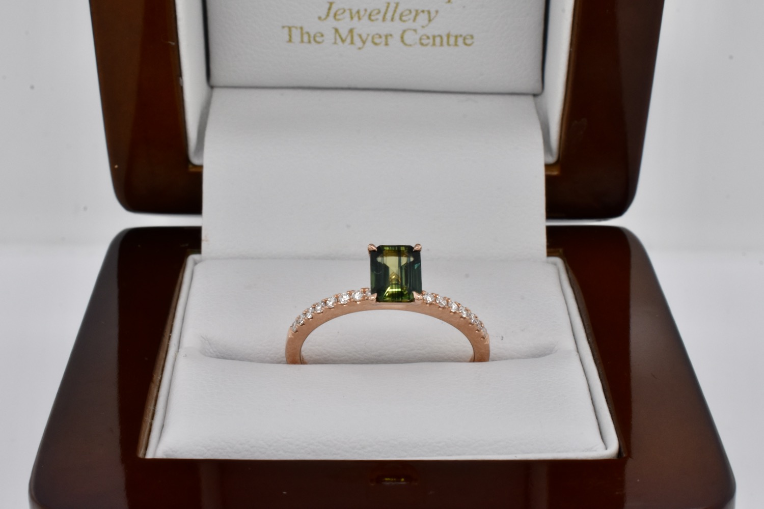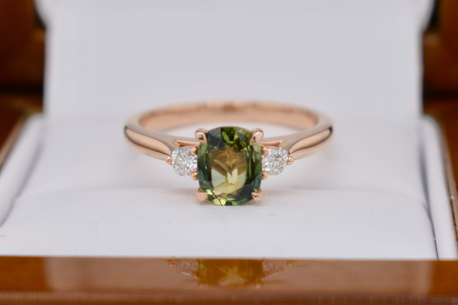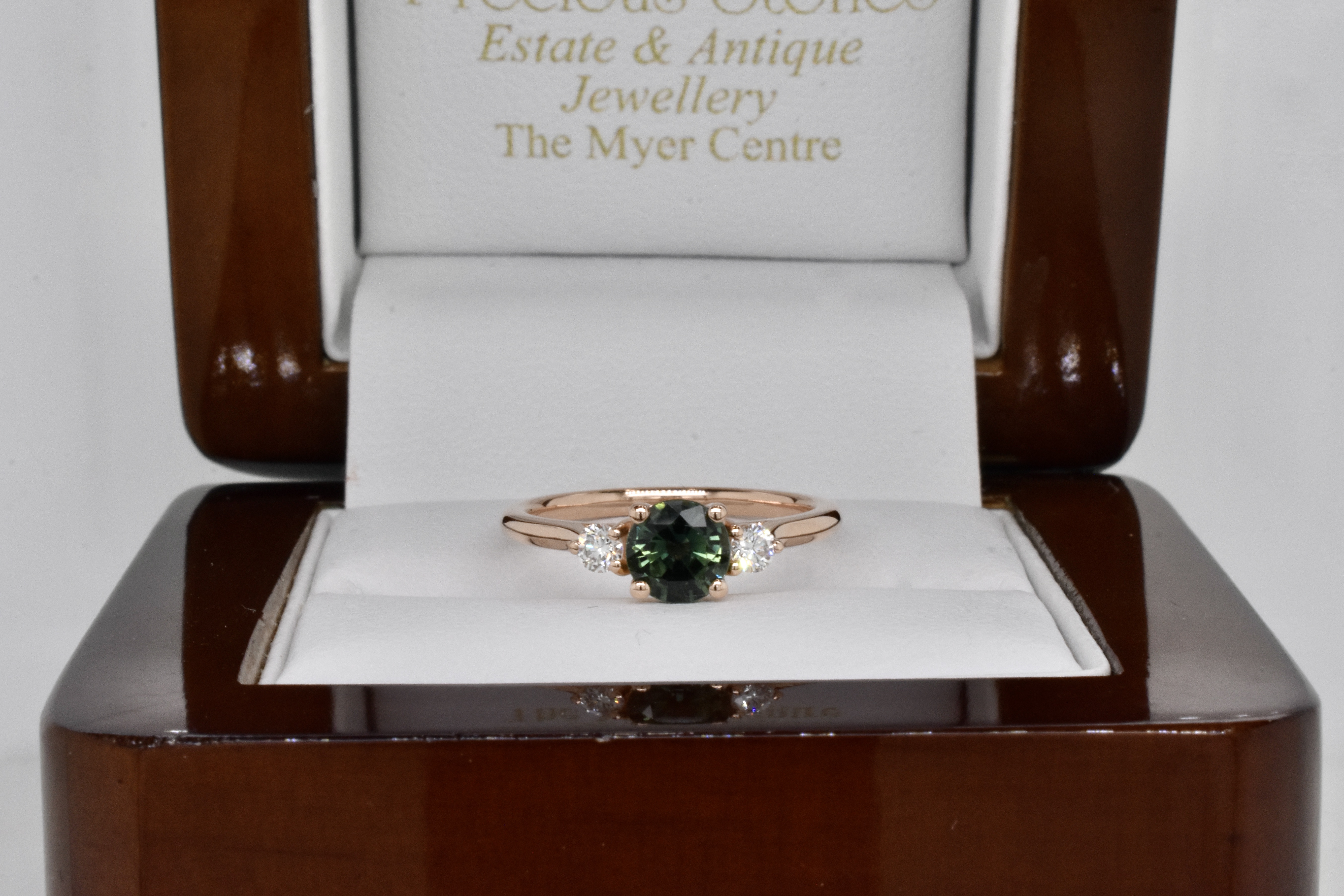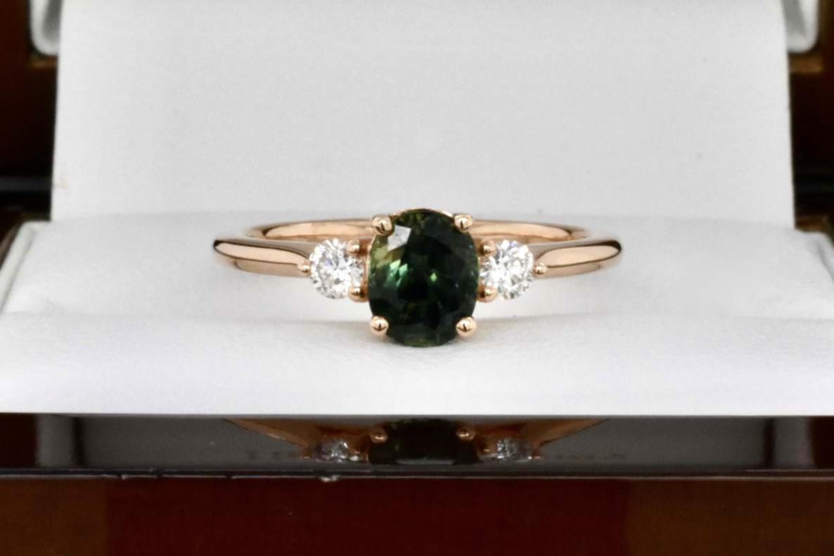 SOLD 18ct Rose Gold 0.73ct Greenish/Blue Australian Sapphire & 0.13ct Ring (J+)