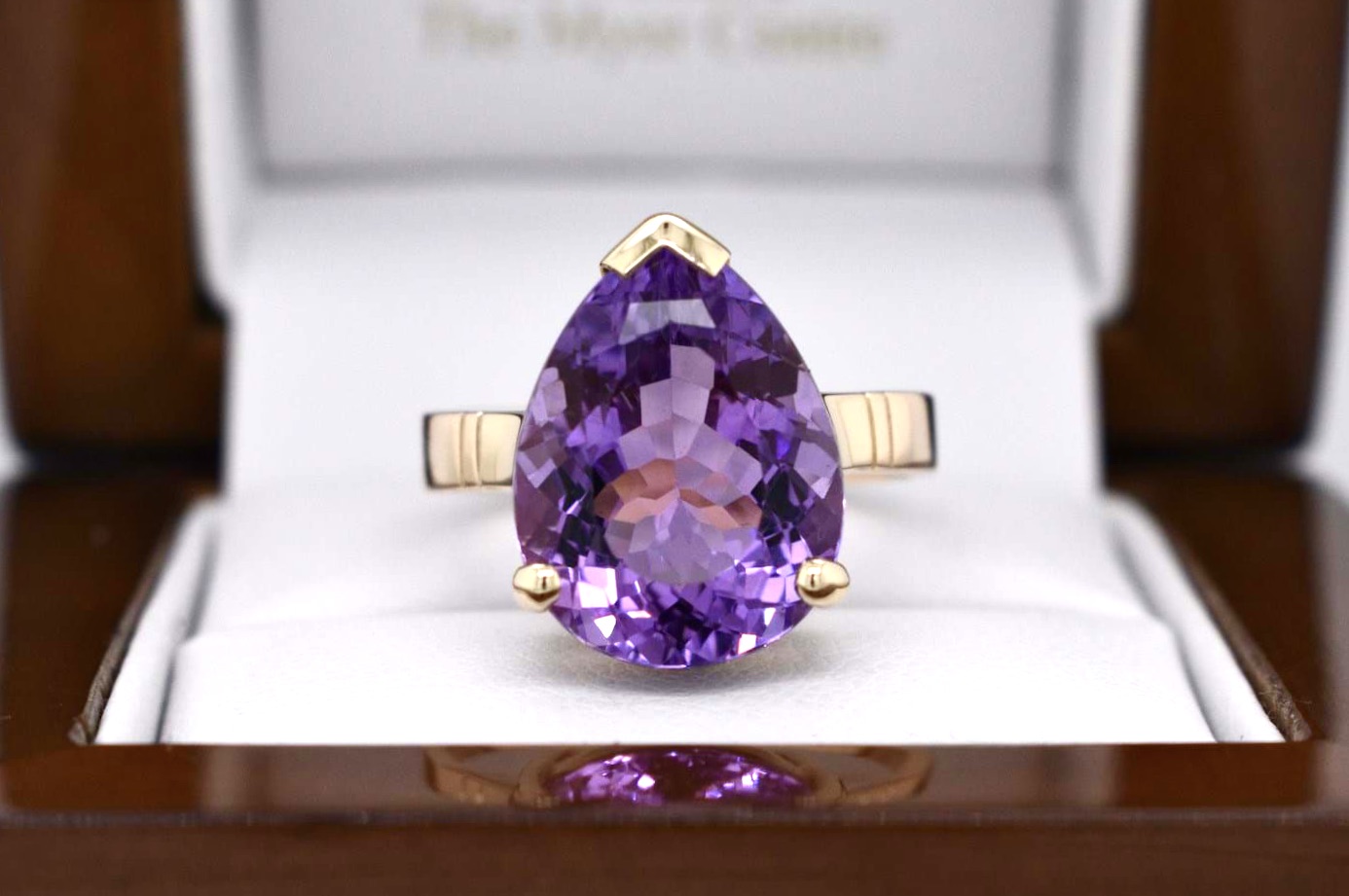 SOLD Handmade 9ct Yellow Gold 6.75ct Pearshape Amethyst Ring (Q)