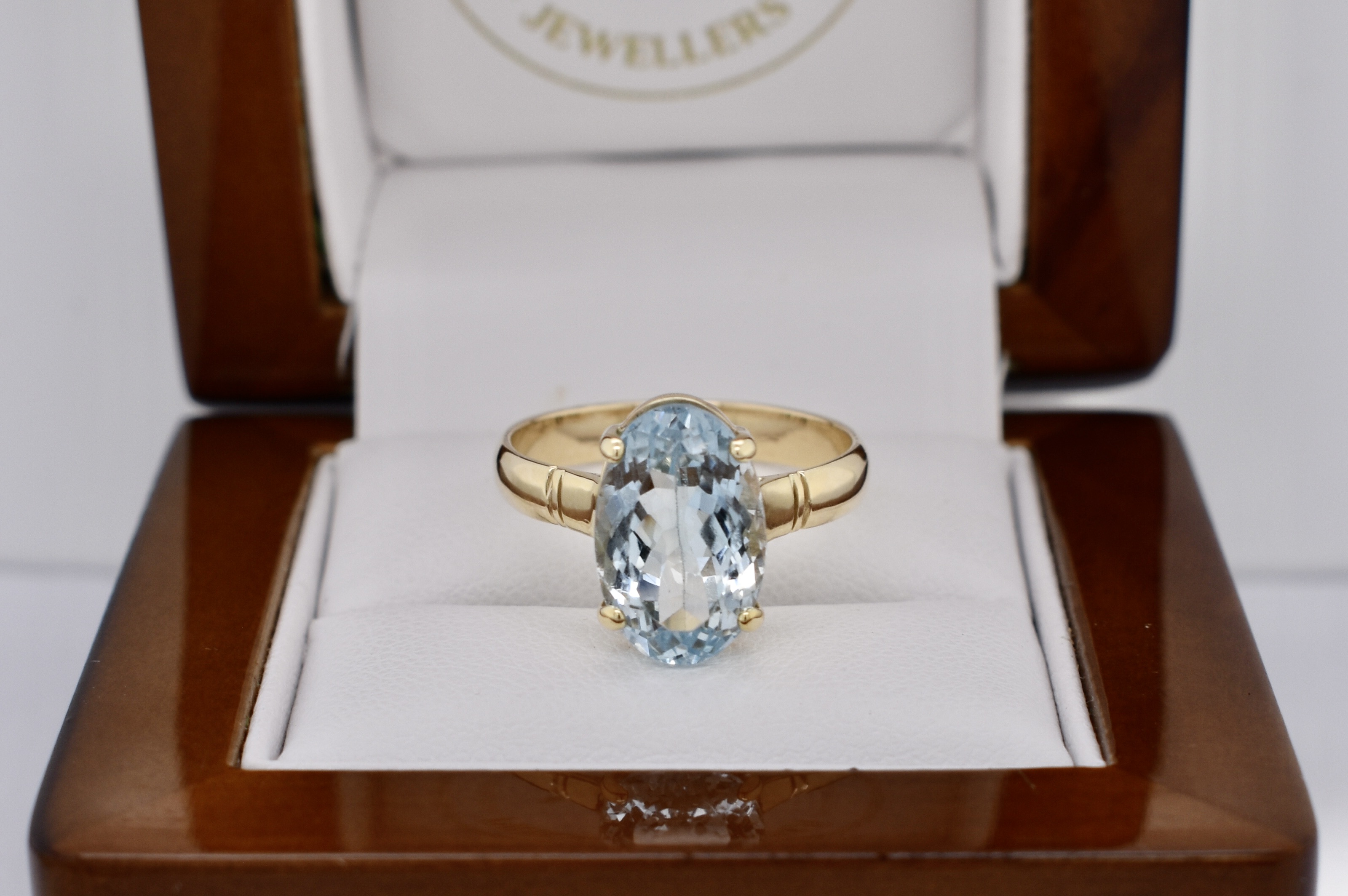 SOLD 9ct Yellow Gold Oval Sky Blue Topaz 13.3x8.6mm Ring (Q)