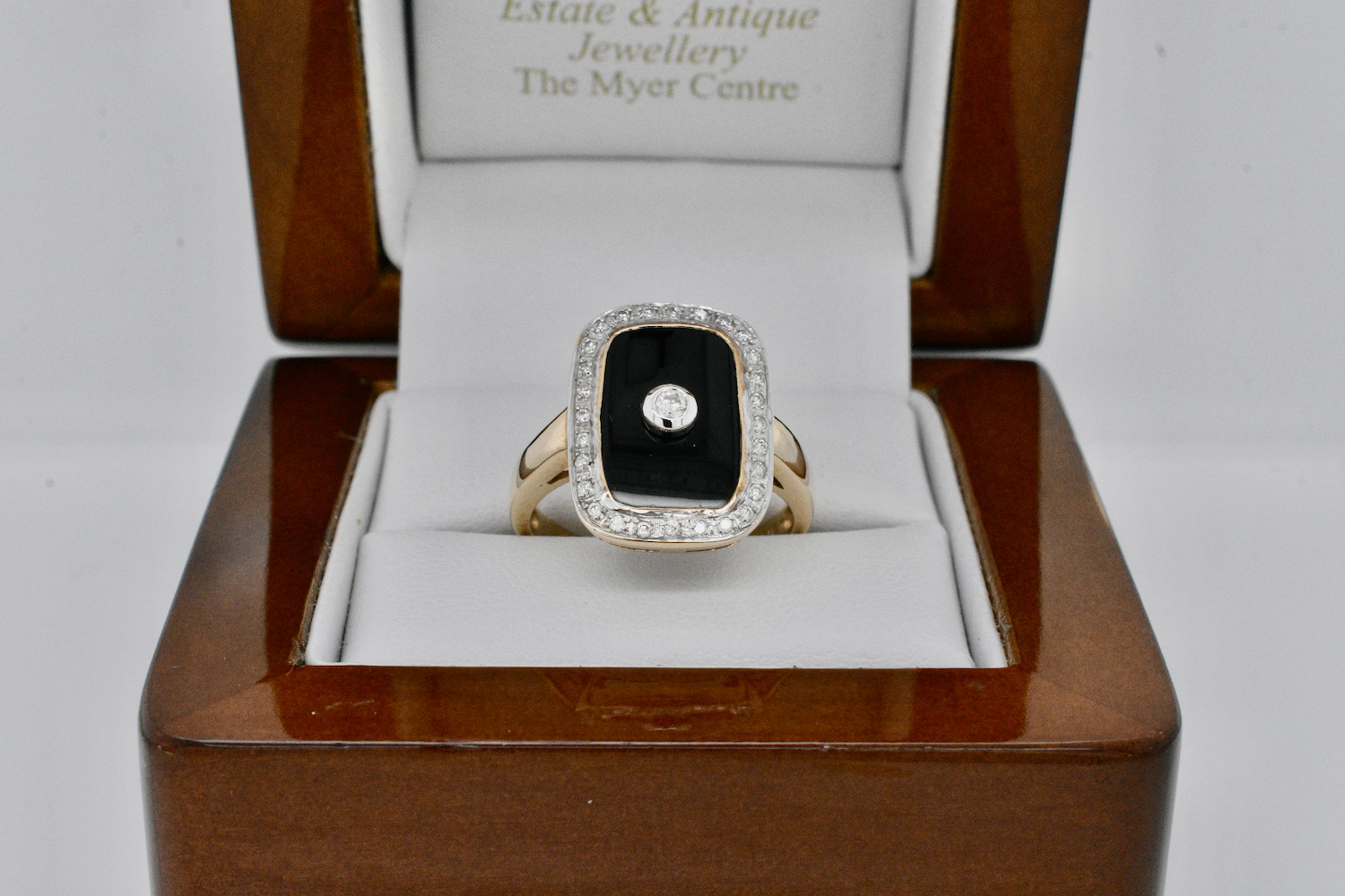 SOLD 9ct Yellow Gold Onyx & 0.27ct Diamond Emerald Cut Ring (M+)