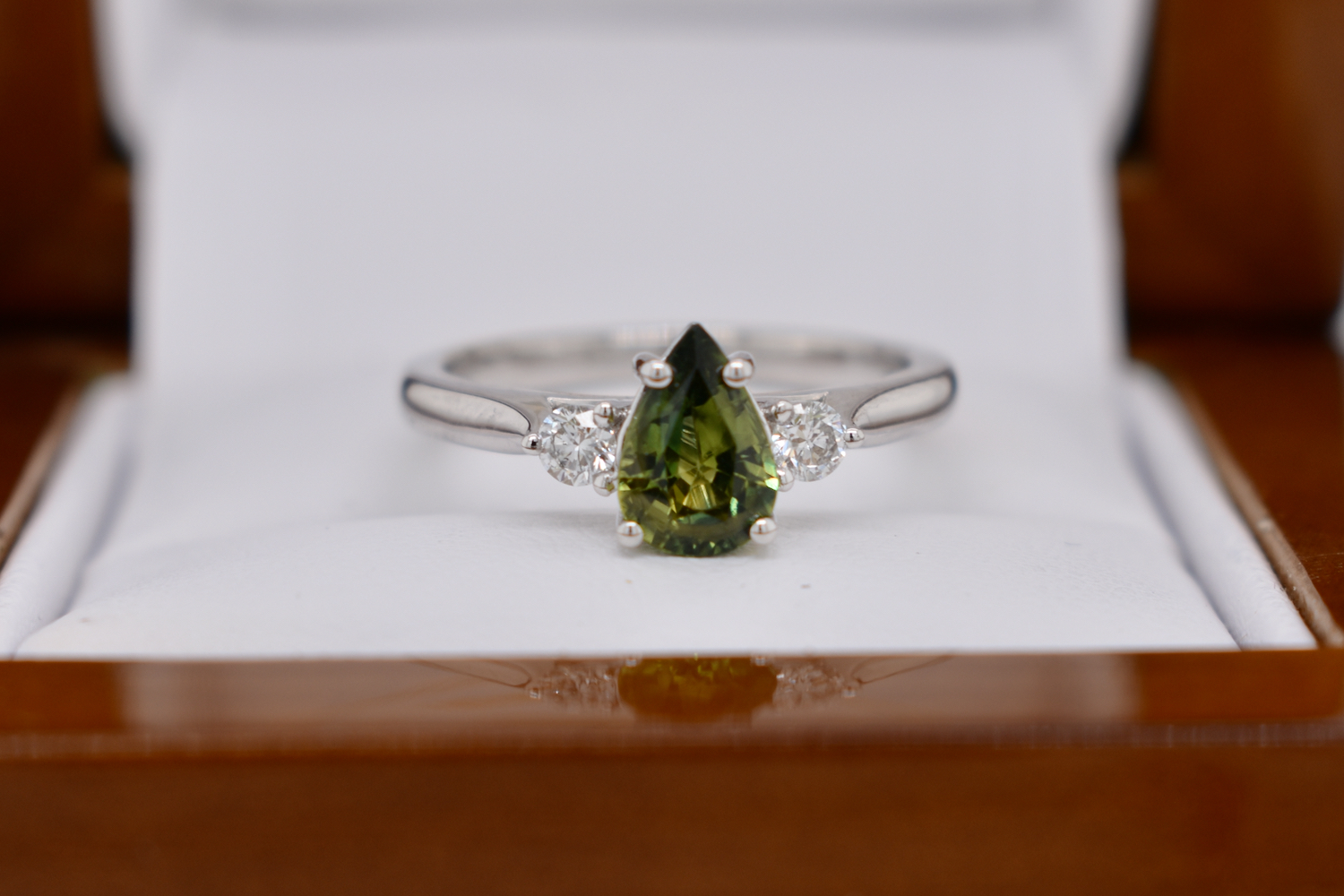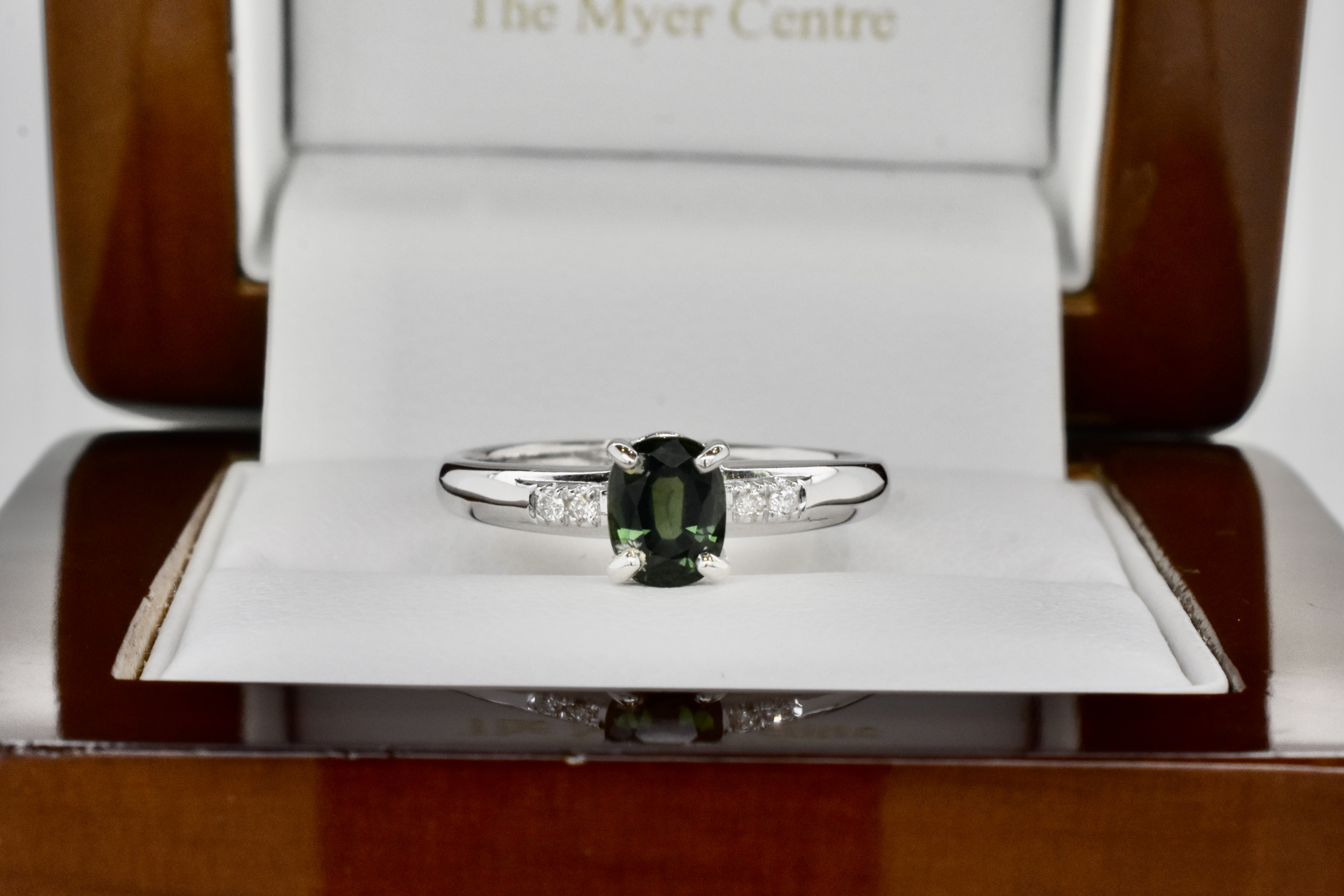 SOLD 18ct White Gold 0.83ct Australian Green Sapphire & 0.04ct Diamond Ring