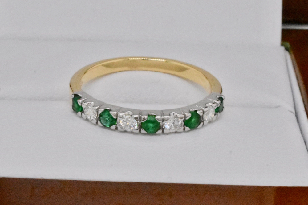 SOLD 18ct Yellow Gold 0.25ct Emerald & 0.17ct Diamond Band