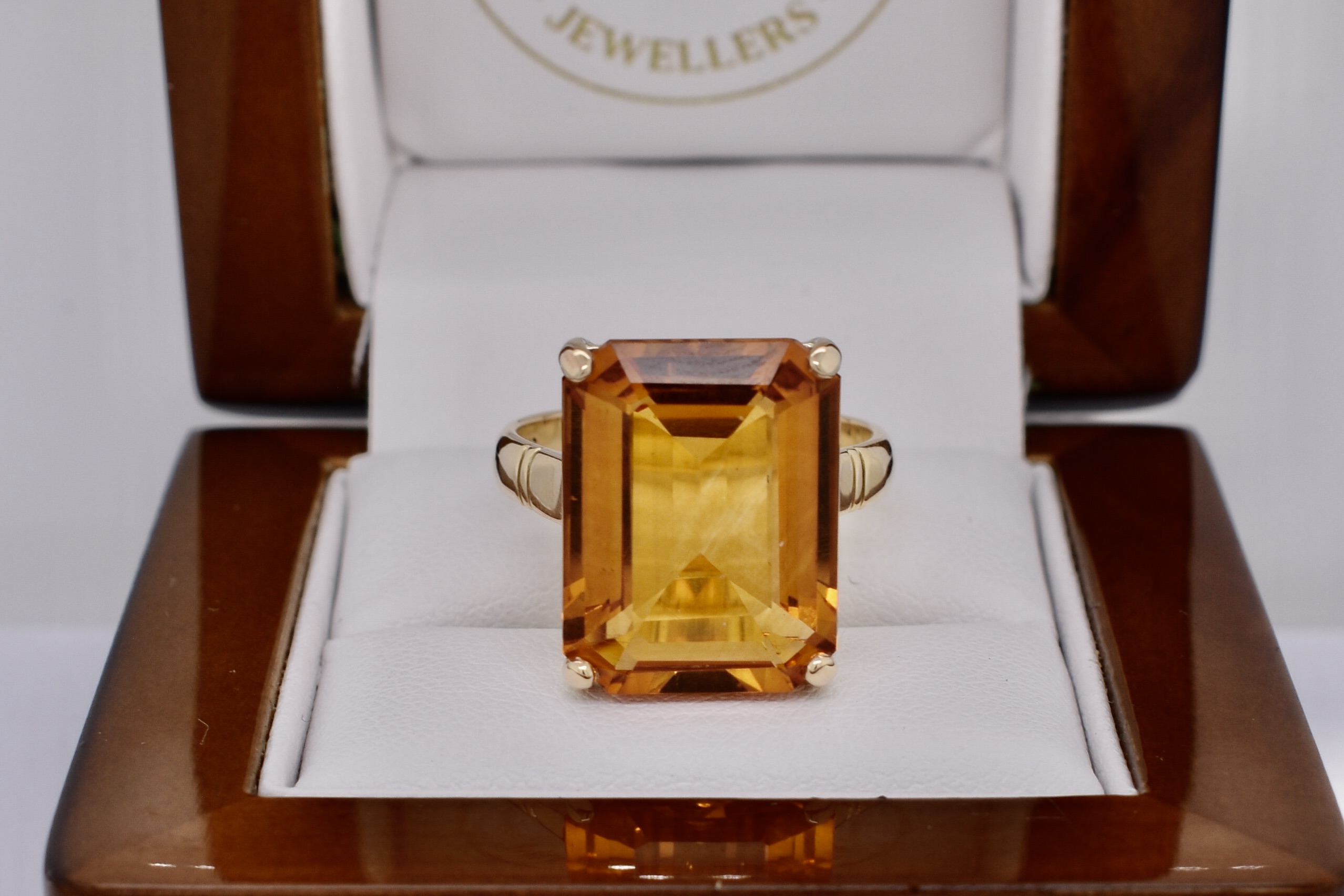 SOLD Handmade 9ct Yellow Gold 11.50ct Citrine Emerald Cut Ring (R)