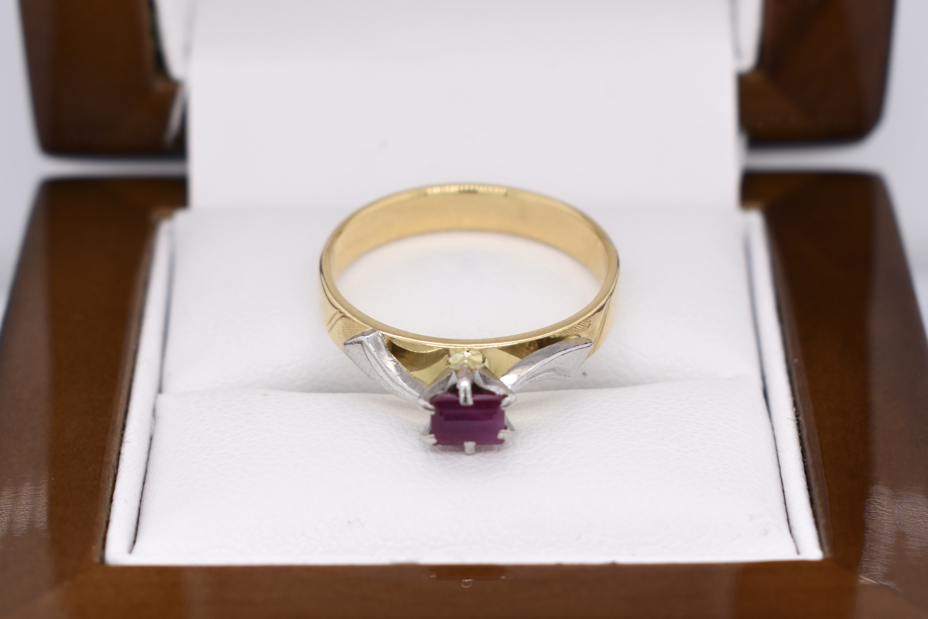 SOLD 18ct Yellow Gold 0.40ct Baguette Ruby East/West Set Ring (O)