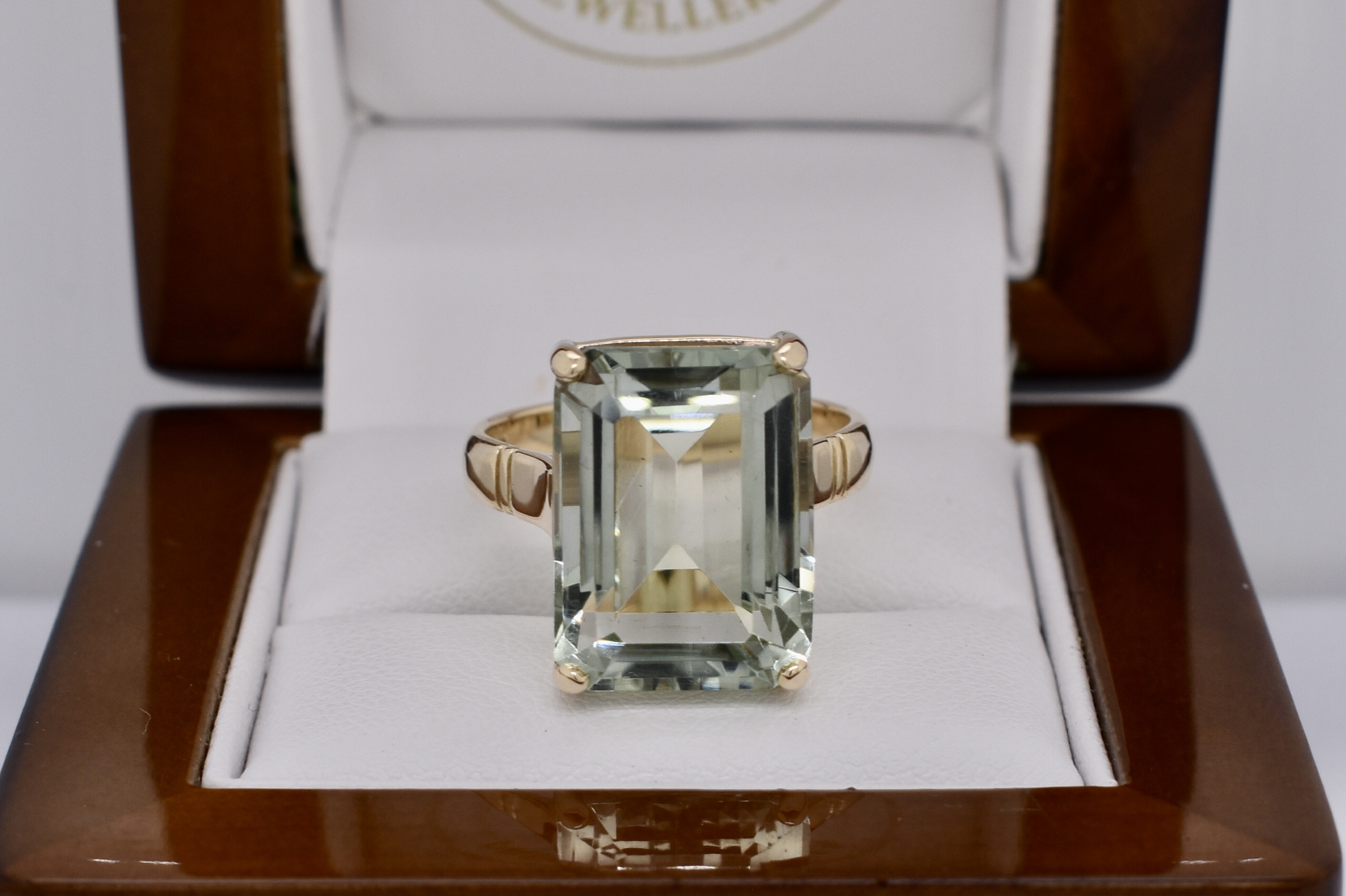 SOLD Handmade 9ct Yellow Gold Emerald Cut Prasiolite Ring (Q)