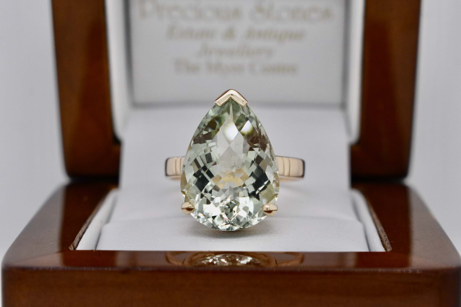 SOLD Handmade 9ct Yellow Gold 13ct Pearshape Prasiolite Ring (T+)