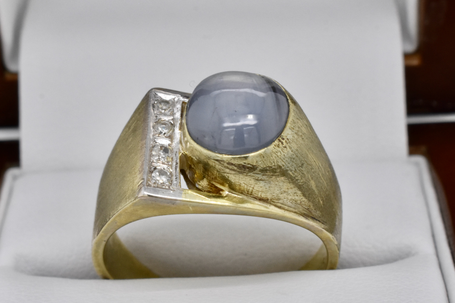 SOLD Vintage 14ct Yellow Gold Star Sapphire & Diamond Ring