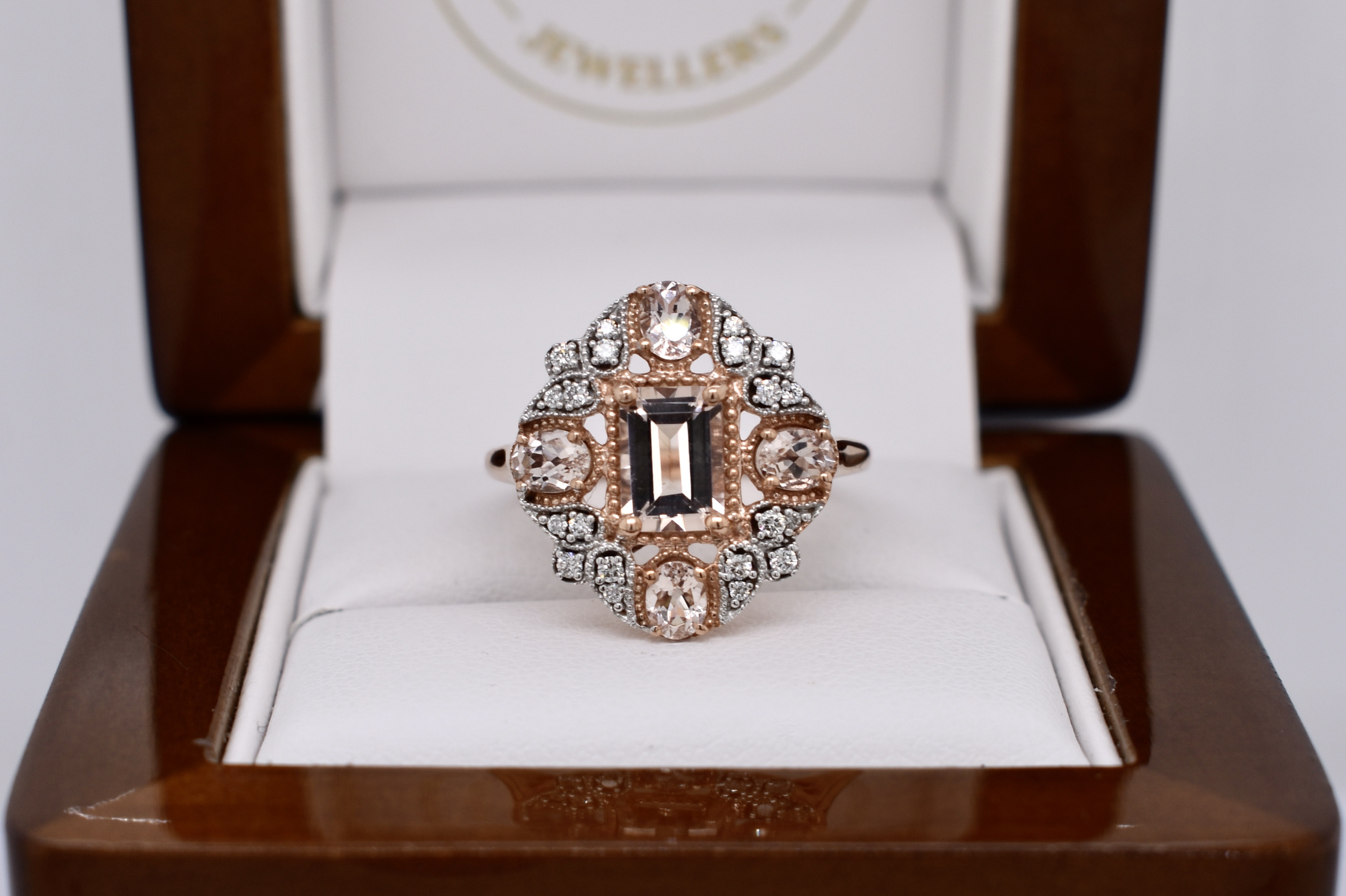 SOLD 9ct Rose Gold 1.46ct Morganite & 0.31ct Diamond Cluster Ring (N)