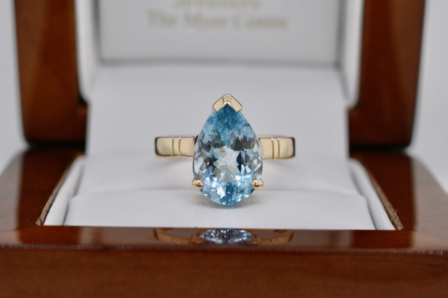 SOLD Handmade 9ct Yellow Gold 4.25ct Pearshape Sky Blue Topaz Ring (M+)