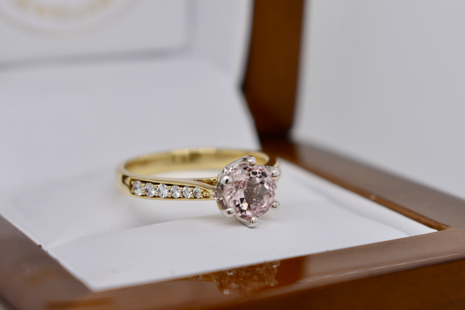 SOLD 18ct Yellow Gold 1.05ct Morganite & Diamond Ring (M+)