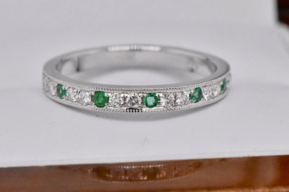SOLD 18ct White Gold Emerald & Diamond Vintage Style Band