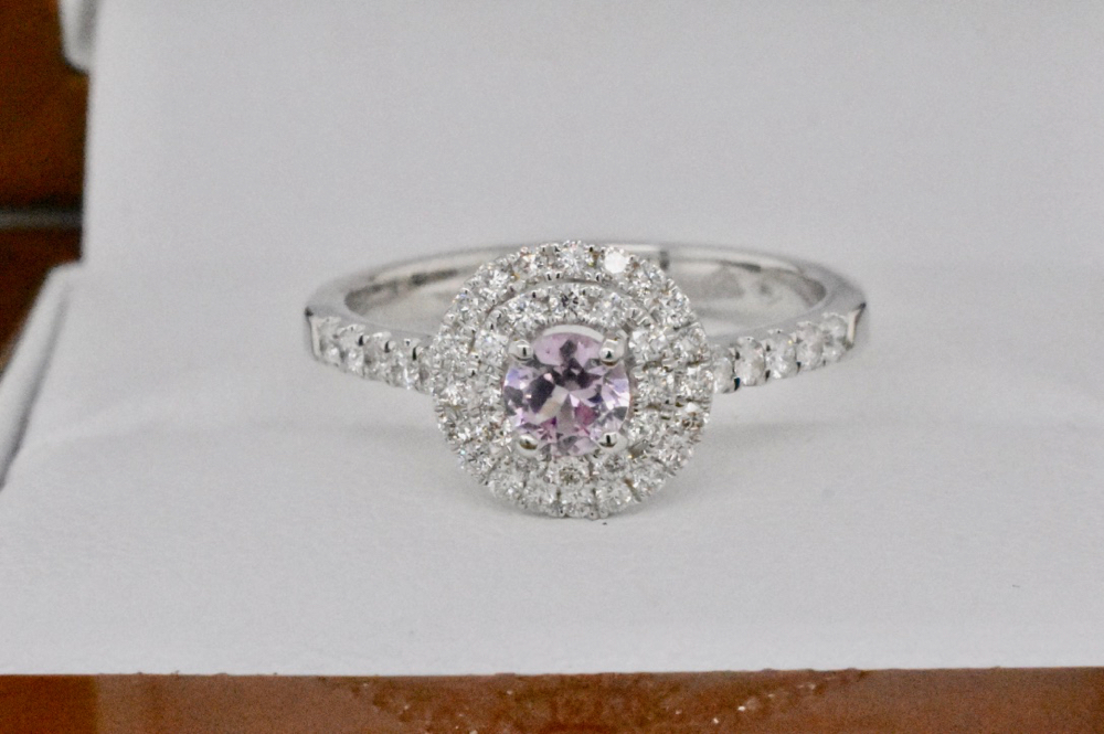 SOLD 18ct White Gold 0.34cts Pale Pink Sapphire & 0.39ct Diamond Halo Ring
