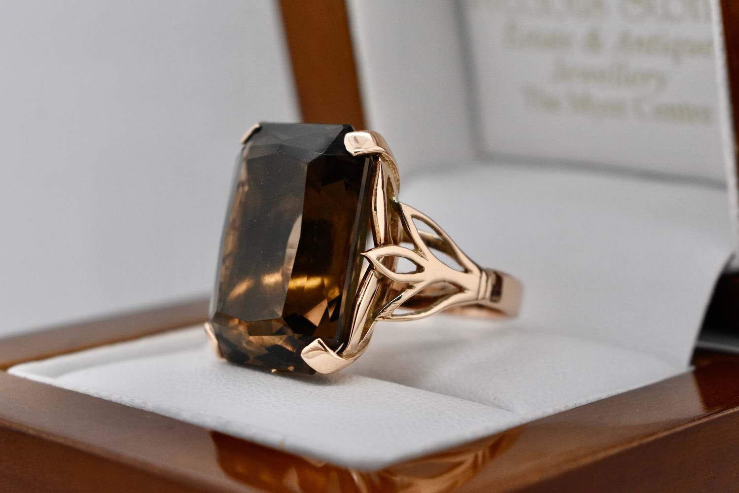 SOLD 9ct Yellow Gold 20ct Smokey Quartz Cocktail Ring