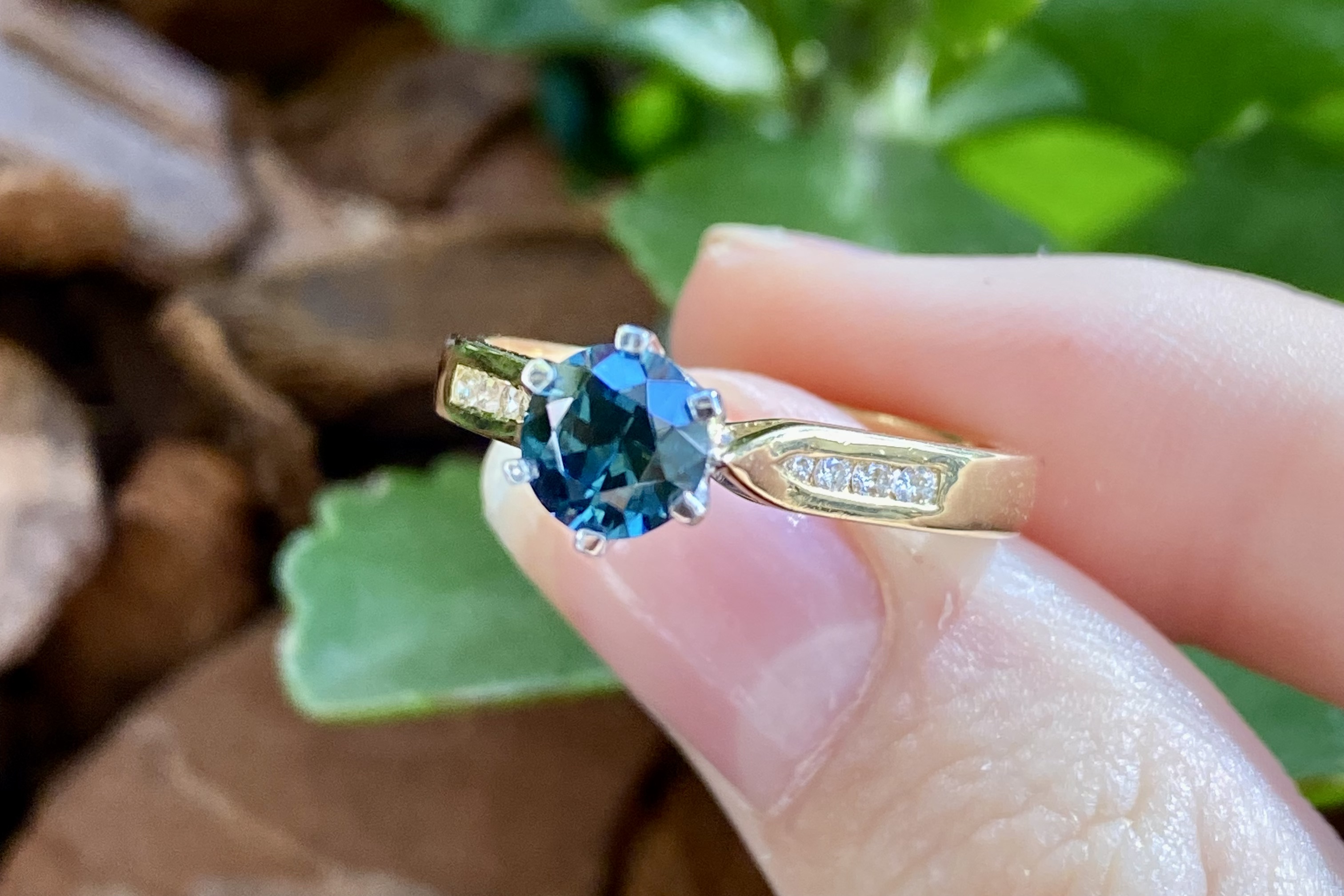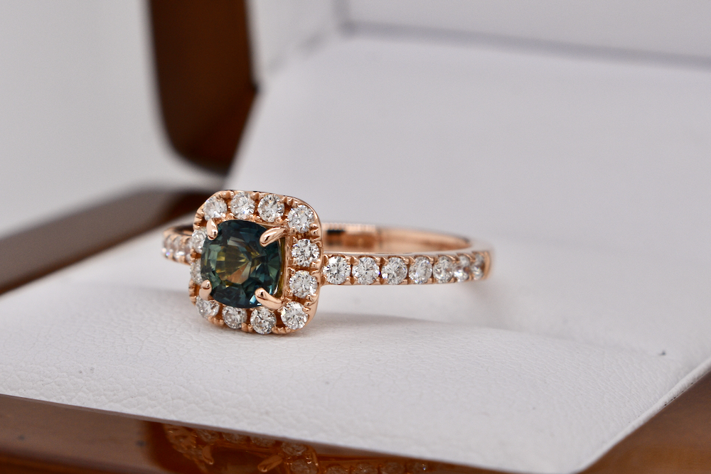 SOLD 18ct Rose Gold 0.70ct Teal Sapphire & 0.40ct Diamond Ring
