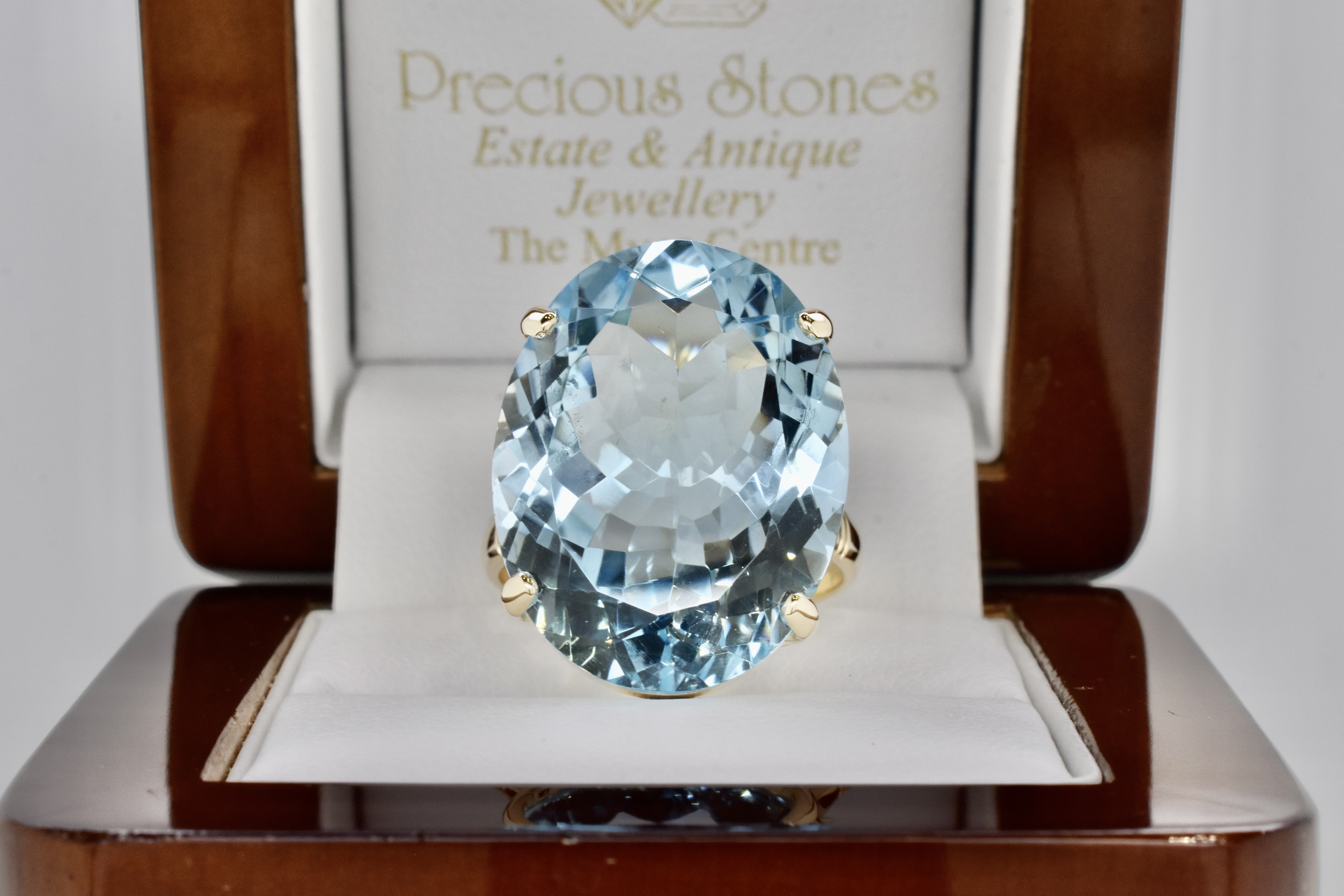 SOLD Handmade 9ct Yellow Gold 35.50ct Sky Blue Topaz Ring (S+)