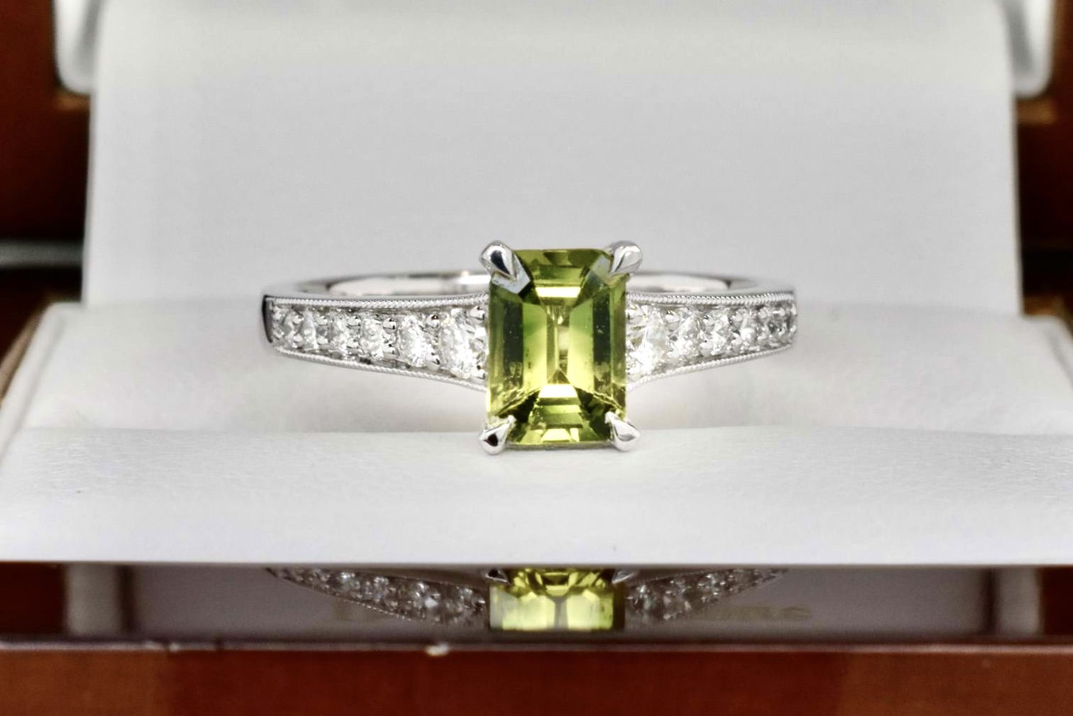 SOLD 18ct White Gold 0.84ct Green Tourmaline & 0.37ct Diamond Halo Ring