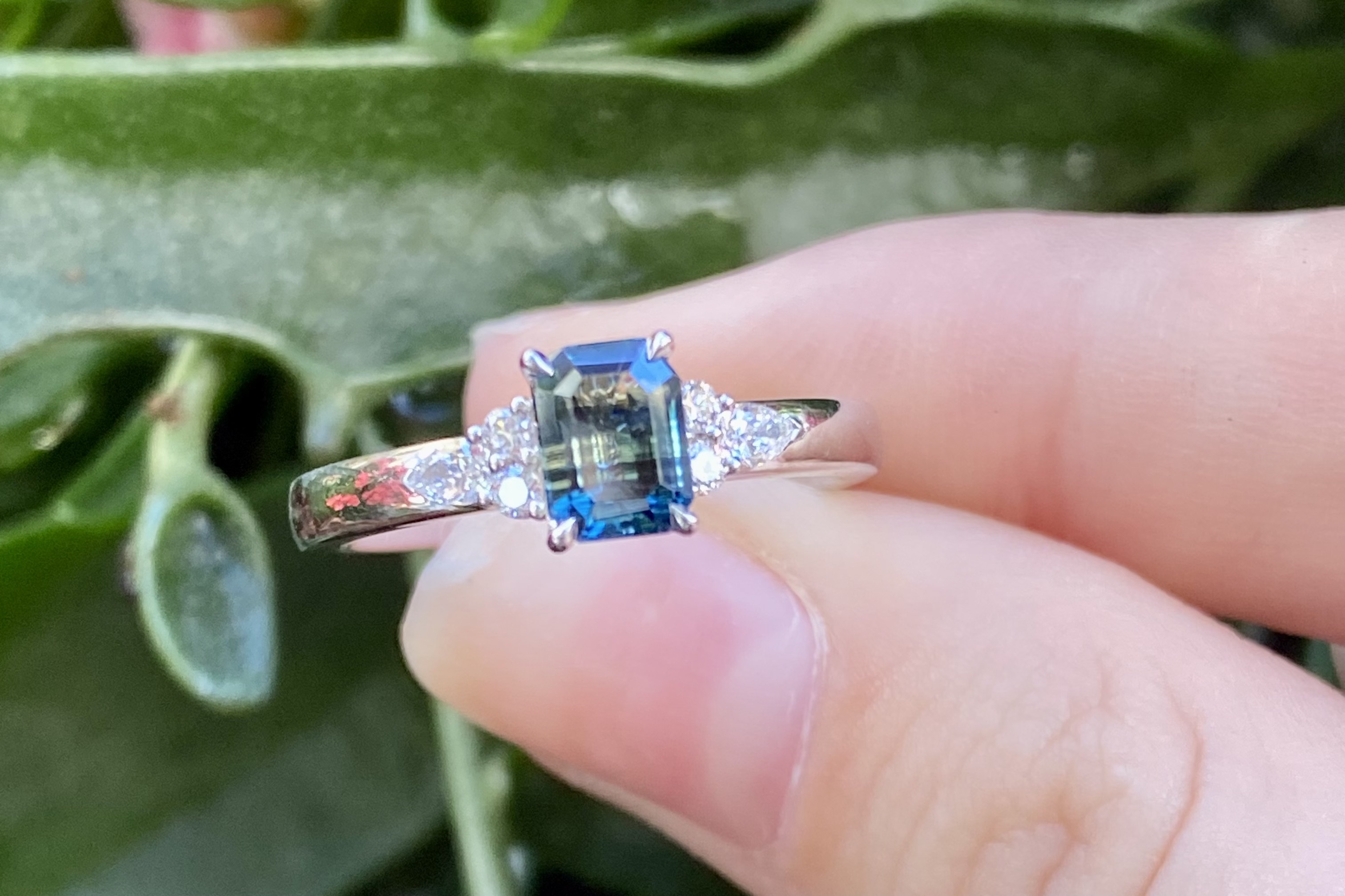 SOLD 18ct Rose Gold 0.72ct Emerald Cut Parti Sapphire & Diamond Ring (N)