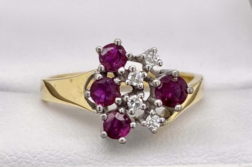 SOLD Vintage 18ct Yellow Gold 0.66ct Ruby & 0.06ct Diamond Cluster Ring