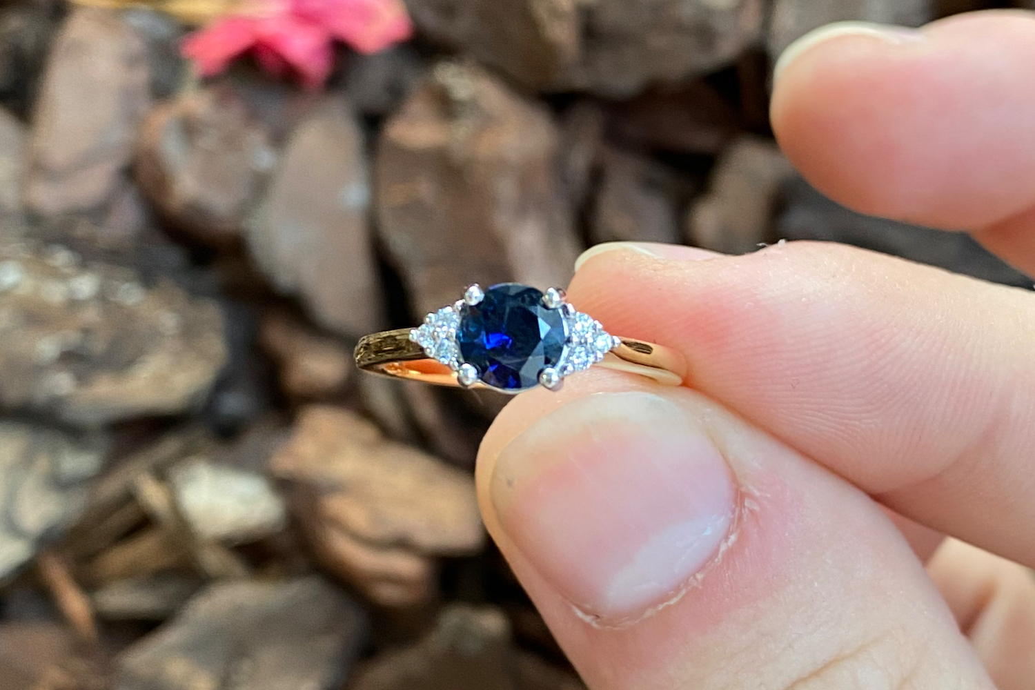 SOLD 18ct Yellow & White Gold 0.94ct Round Australian Sapphire & Channel Set Diamond Ring (Q)