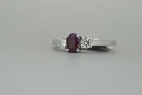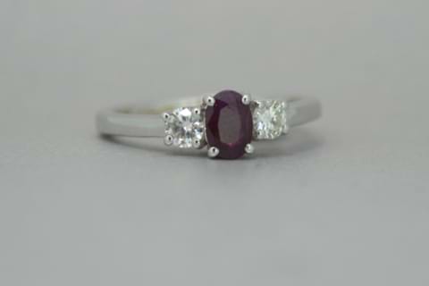This beautiful 0.55ct Ruby is complimented perfectly by two sparkling white diamonds totaling 0.31cts set into 18ct white gold. Independent Valuation Supplied