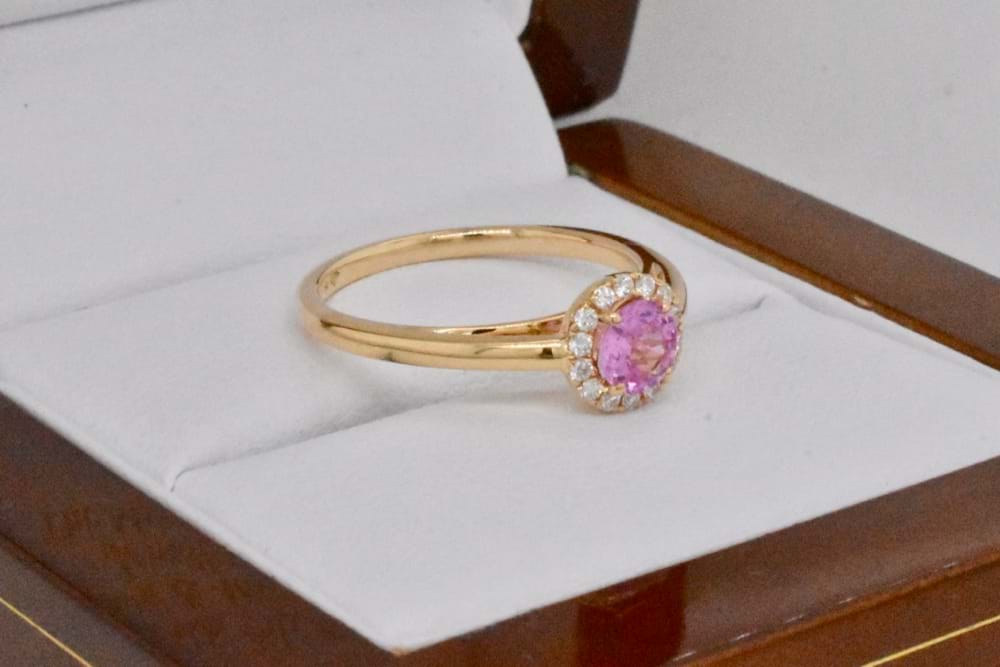SOLD 18ct Yellow Gold 0.54ct Pink Sapphire & 0.11ct Diamond Ring