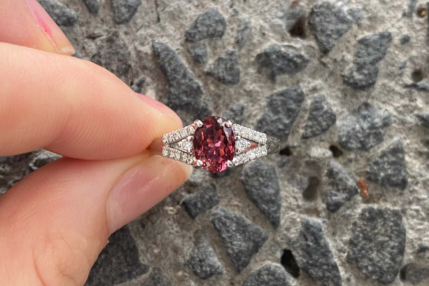 SOLD 9ct White Gold 1.07ct Pink Tourmaline & 0.15ct Diamond Ring
