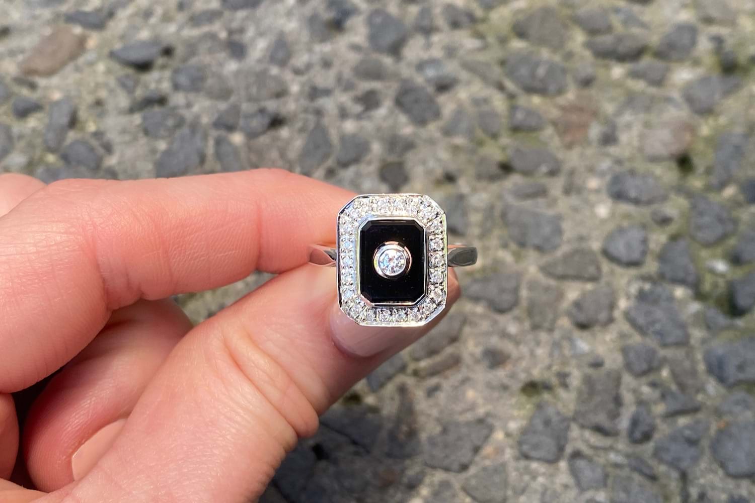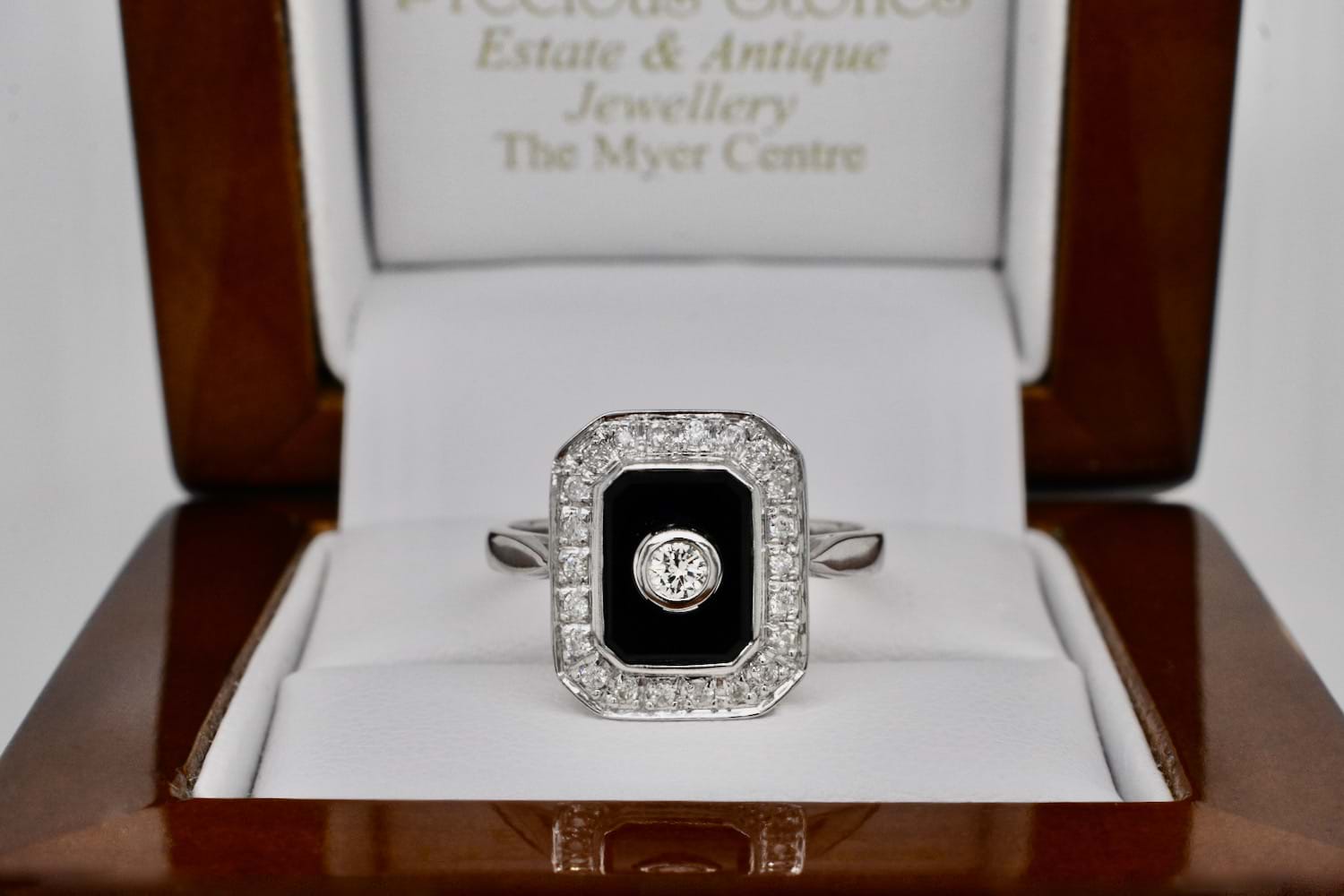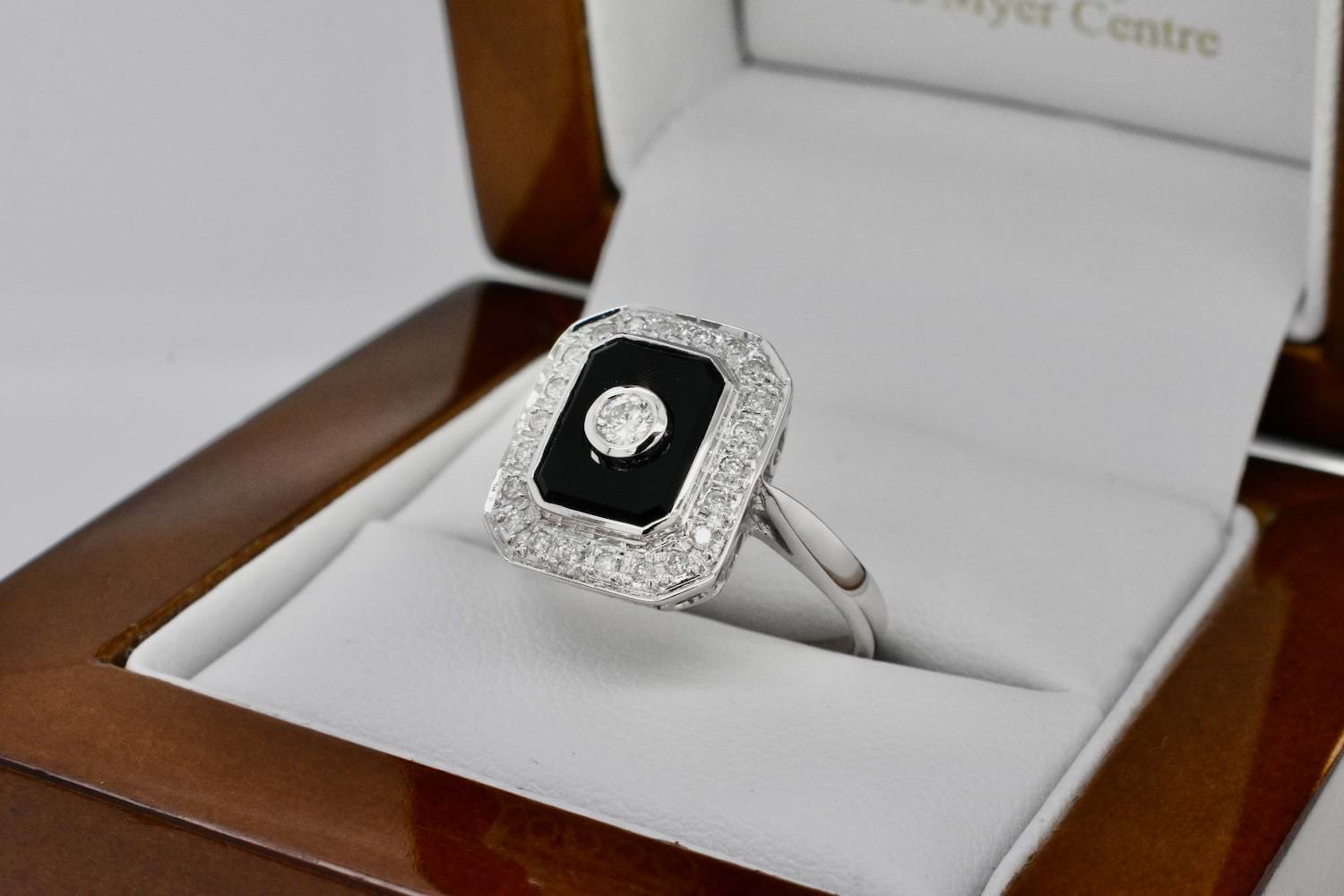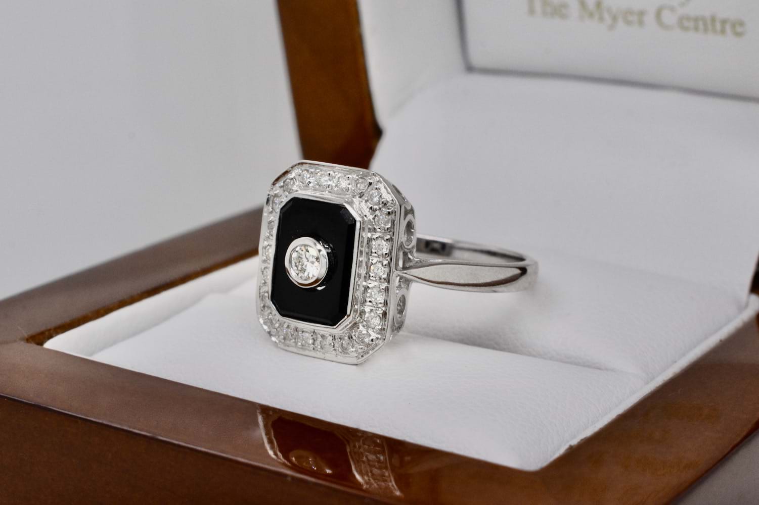 SOLD 9ct White Gold Onyx & 0.29ct Diamond Ring