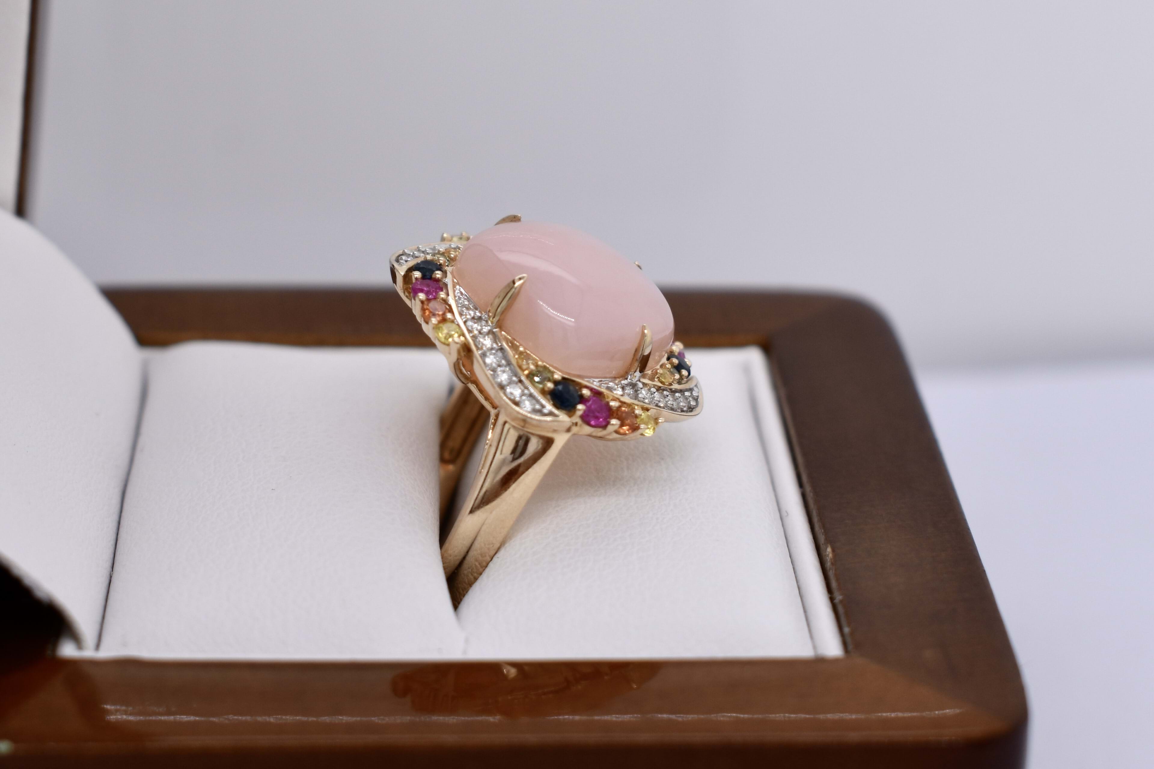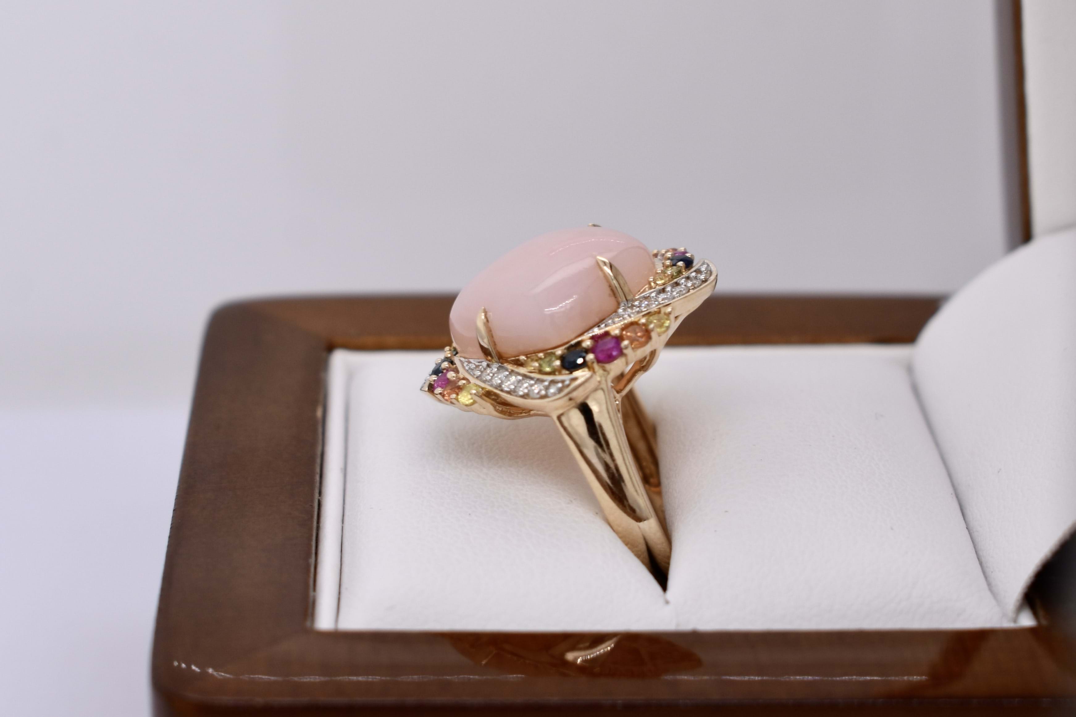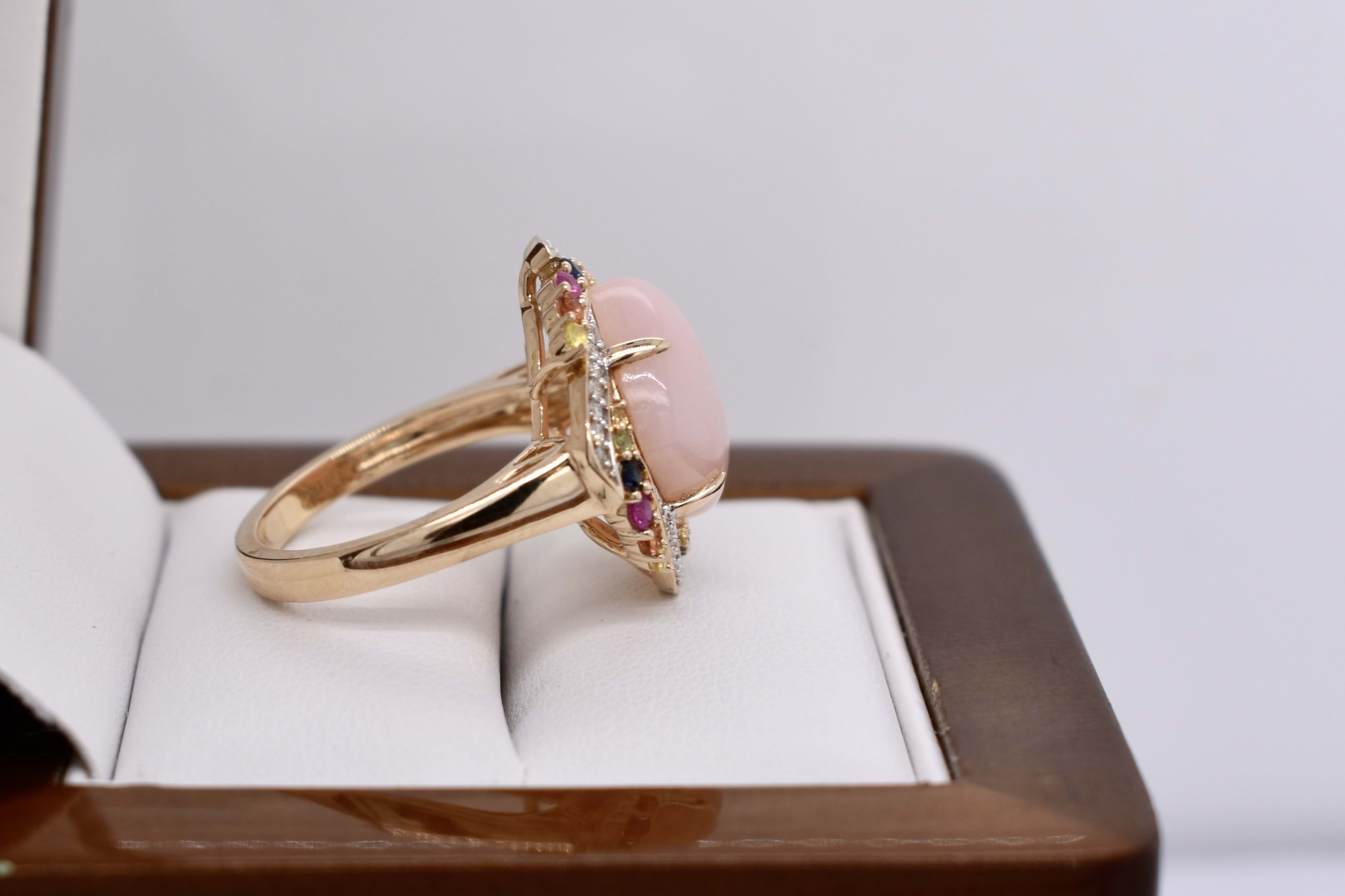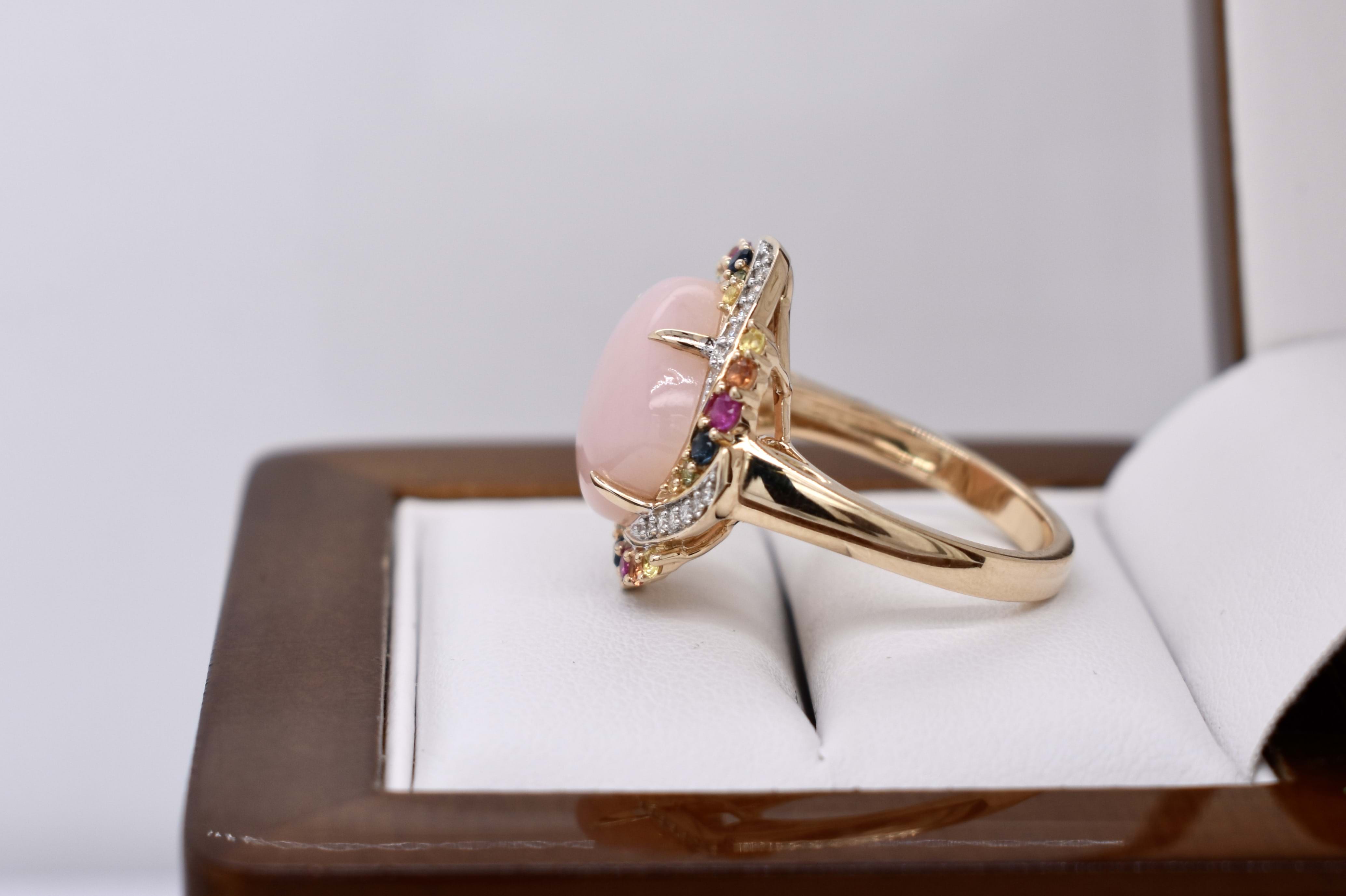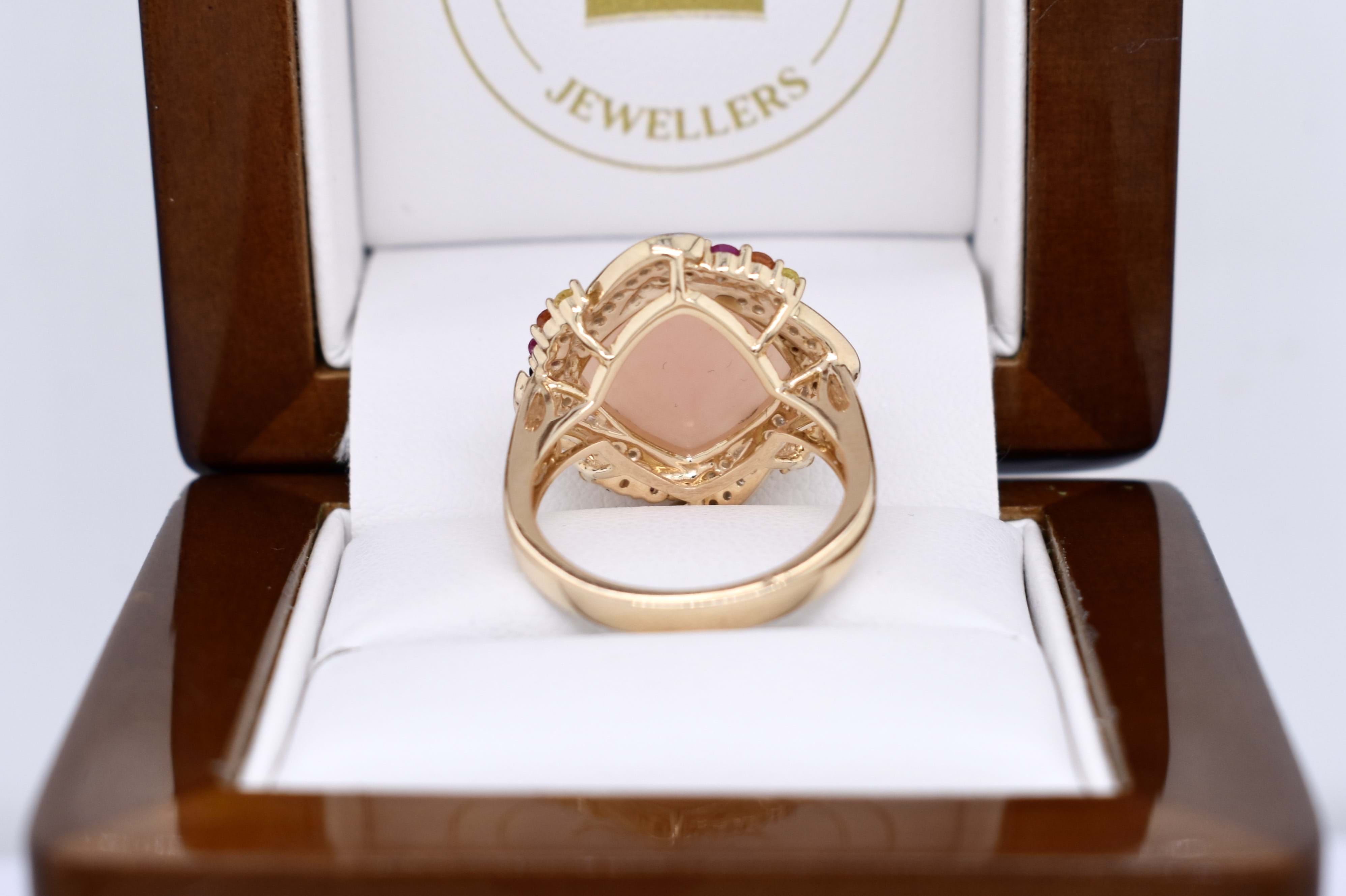 SOLD 9ct Yellow Gold Pink Opal, Multi Coloured Sapphire & 0.16ct Diamond Ring (N)
