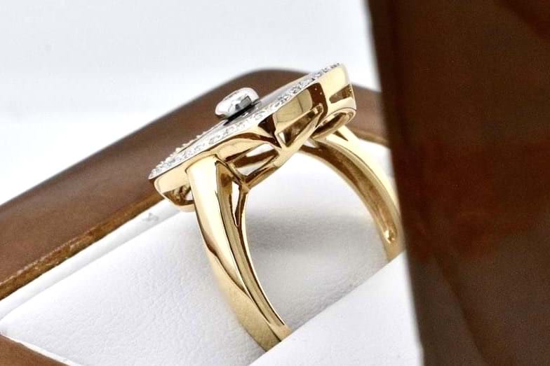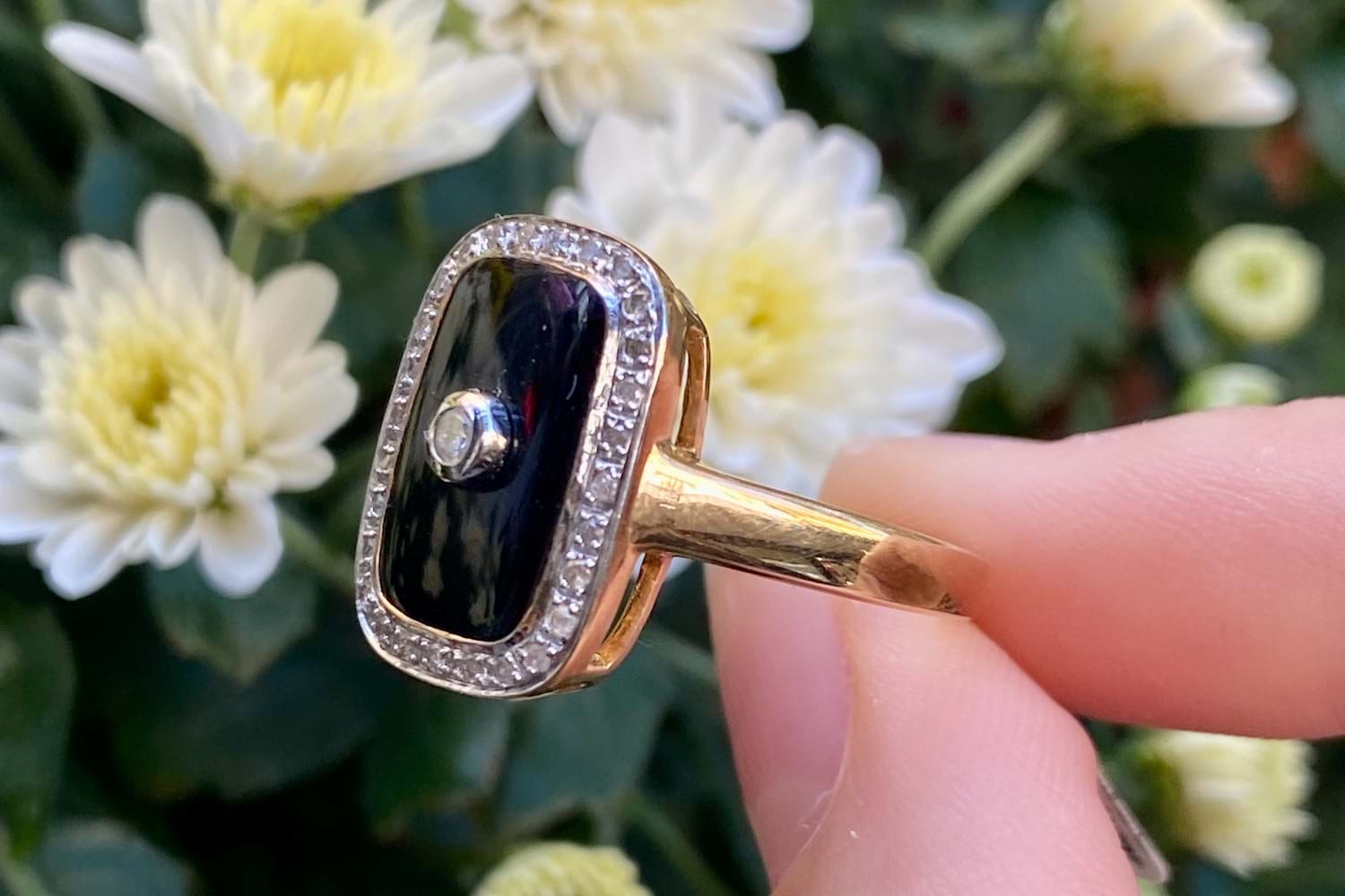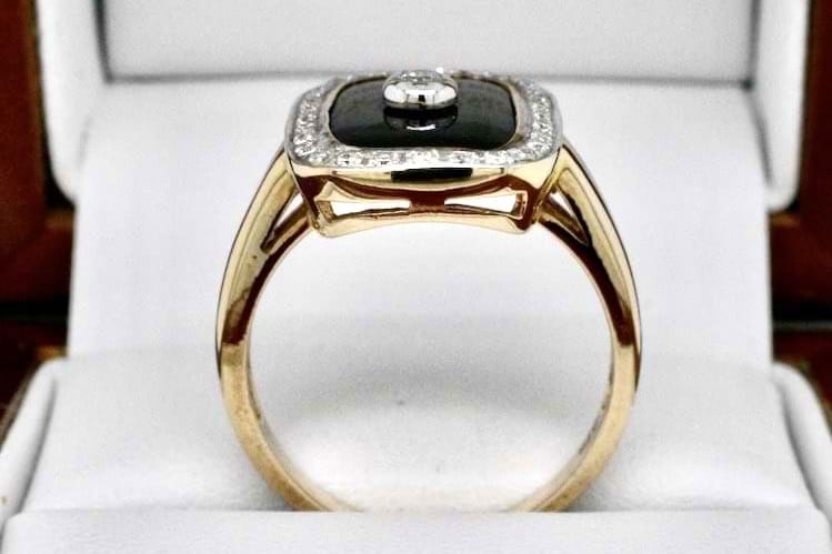 SOLD 9ct Yellow & White Gold Cushion Onyx & Diamond Ring (O)