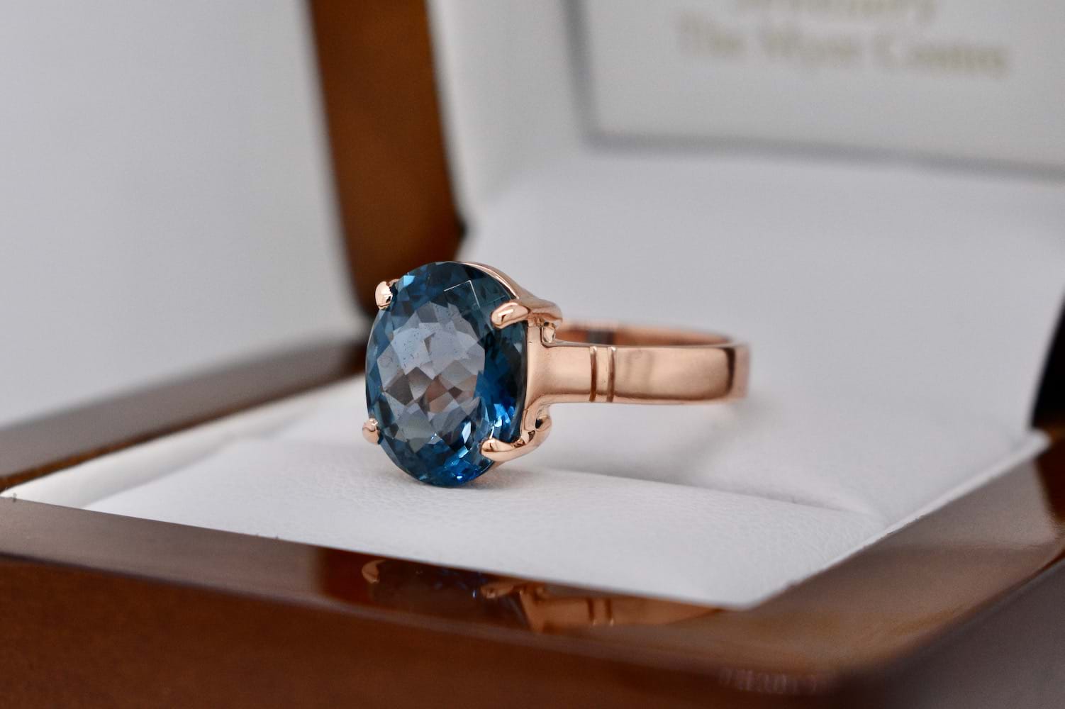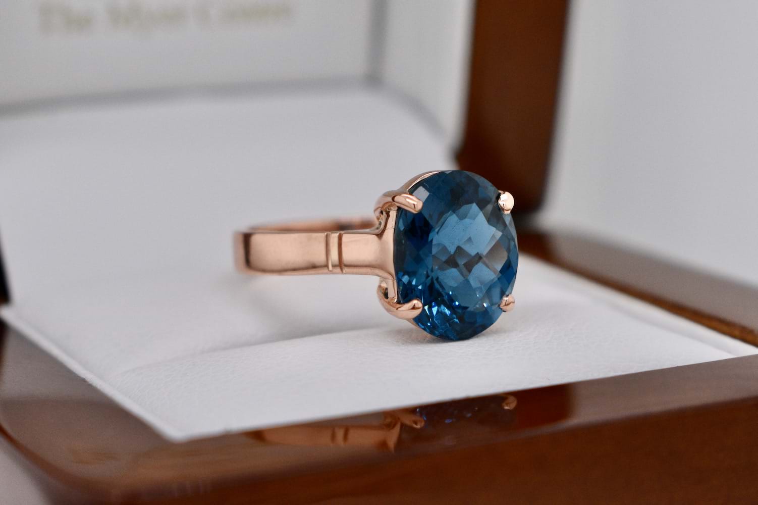 SOLD Handmade 9ct Rose Gold 4.50ct London Blue Topaz Ring (M)