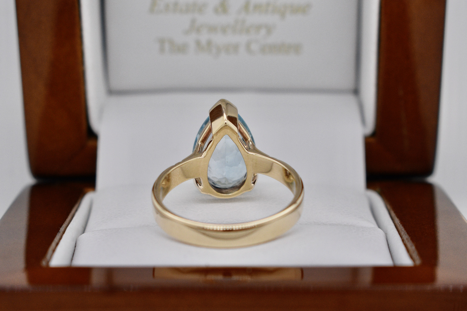 SOLD Handmade 9ct Yellow Gold 4.25ct Pearshape Sky Blue Topaz Ring (M+)