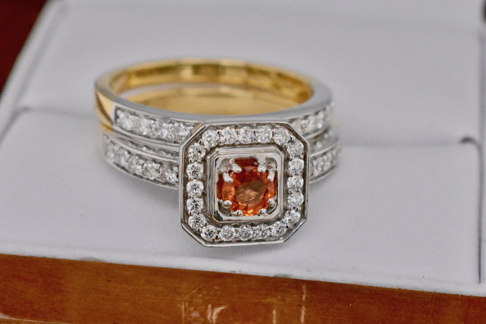 SOLD HALF PRICE! 18ct Orange Sapphire & Diamond Ring Set