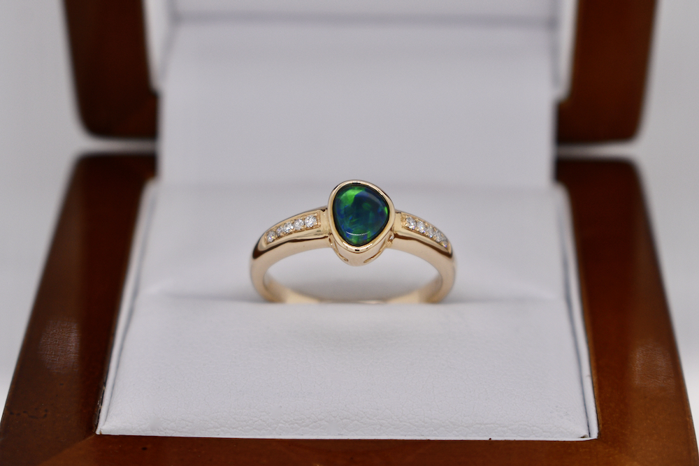 SOLD 9ct Yellow Gold 0.40ct Black Opal & 0.07ct Diamond Ring