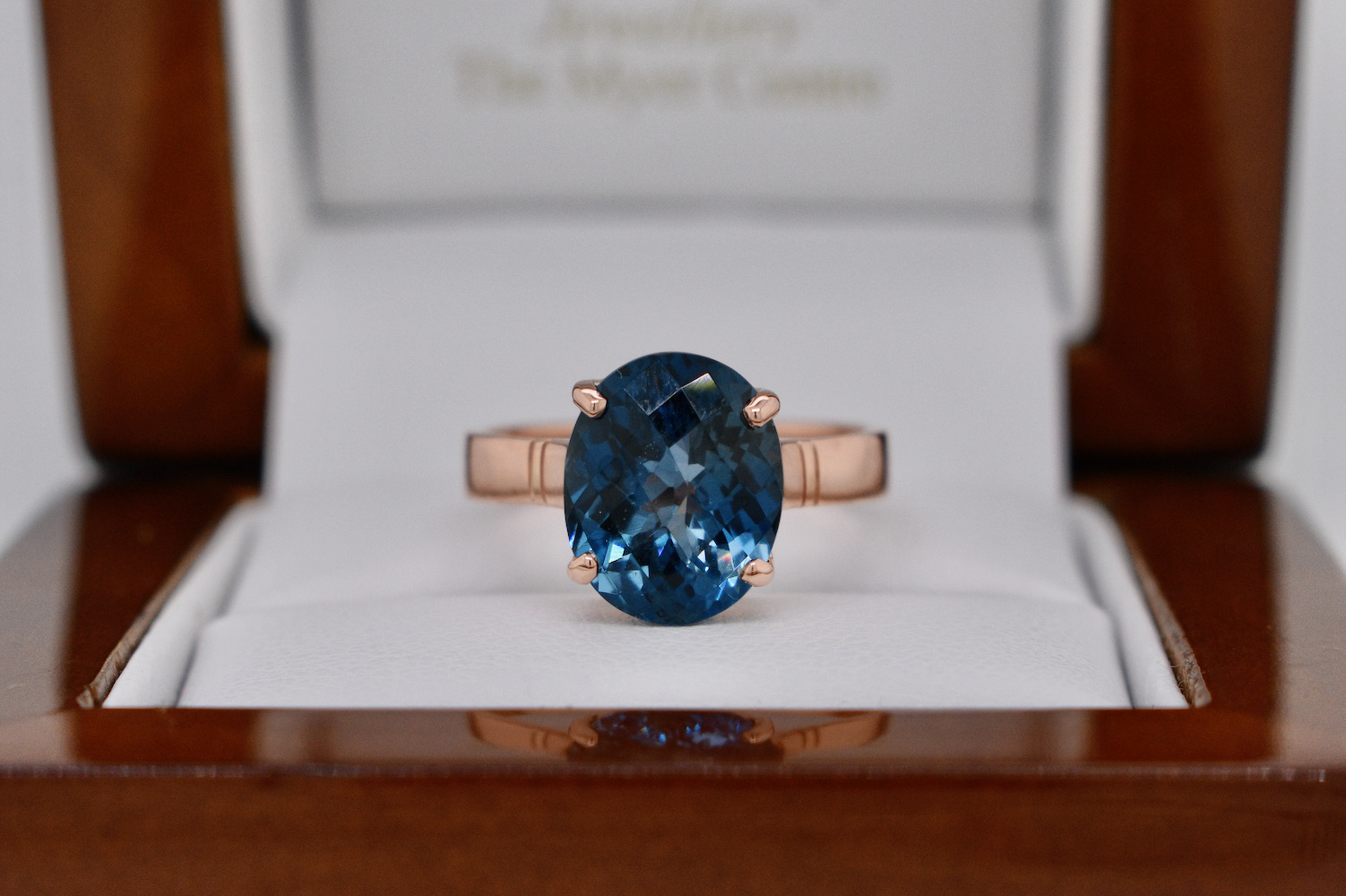 SOLD Handmade 9ct Rose Gold 4.50ct London Blue Topaz Ring (M)