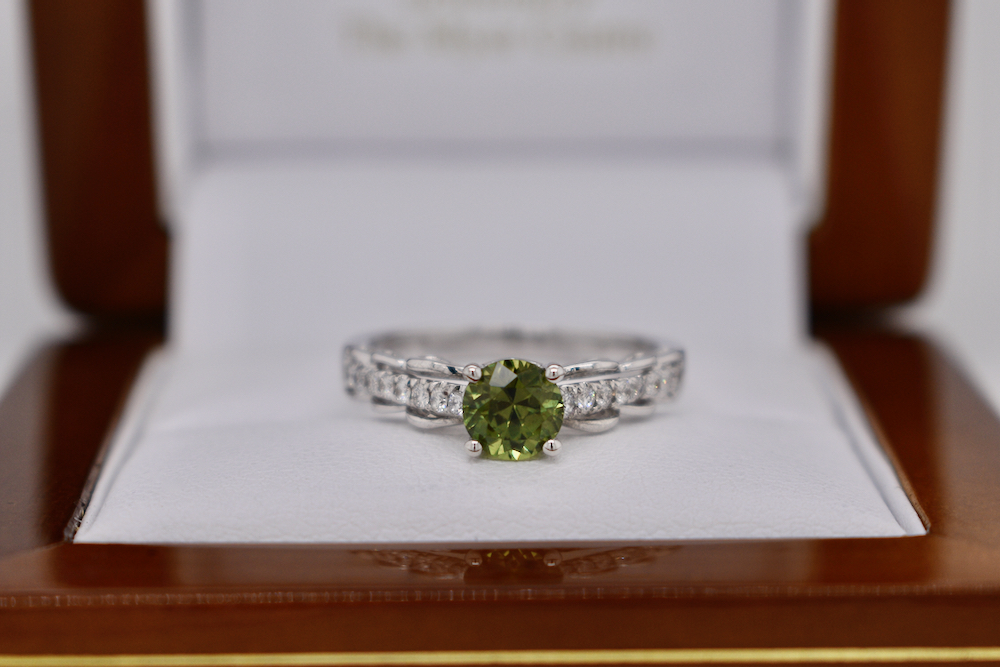 SOLD 18ct White Gold 0.88ct Green Sapphire & 0.19ct Diamond Ring