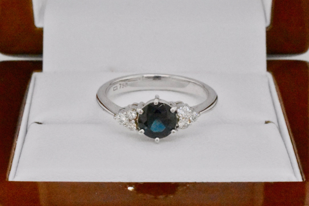 SOLD 18ct White Gold 1.04ct Australian Sapphire & 0.14ct Diamond Ring