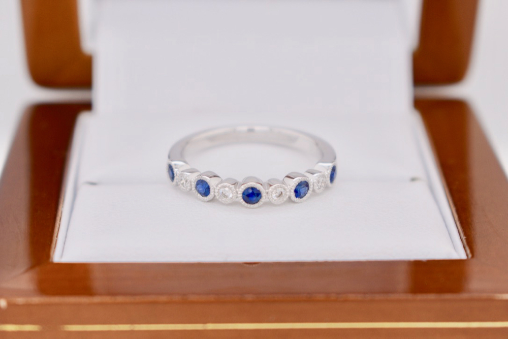 SOLD 18ct White Gold 0.30ct Sapphire & 0.07ct Diamond Deco Style Band
