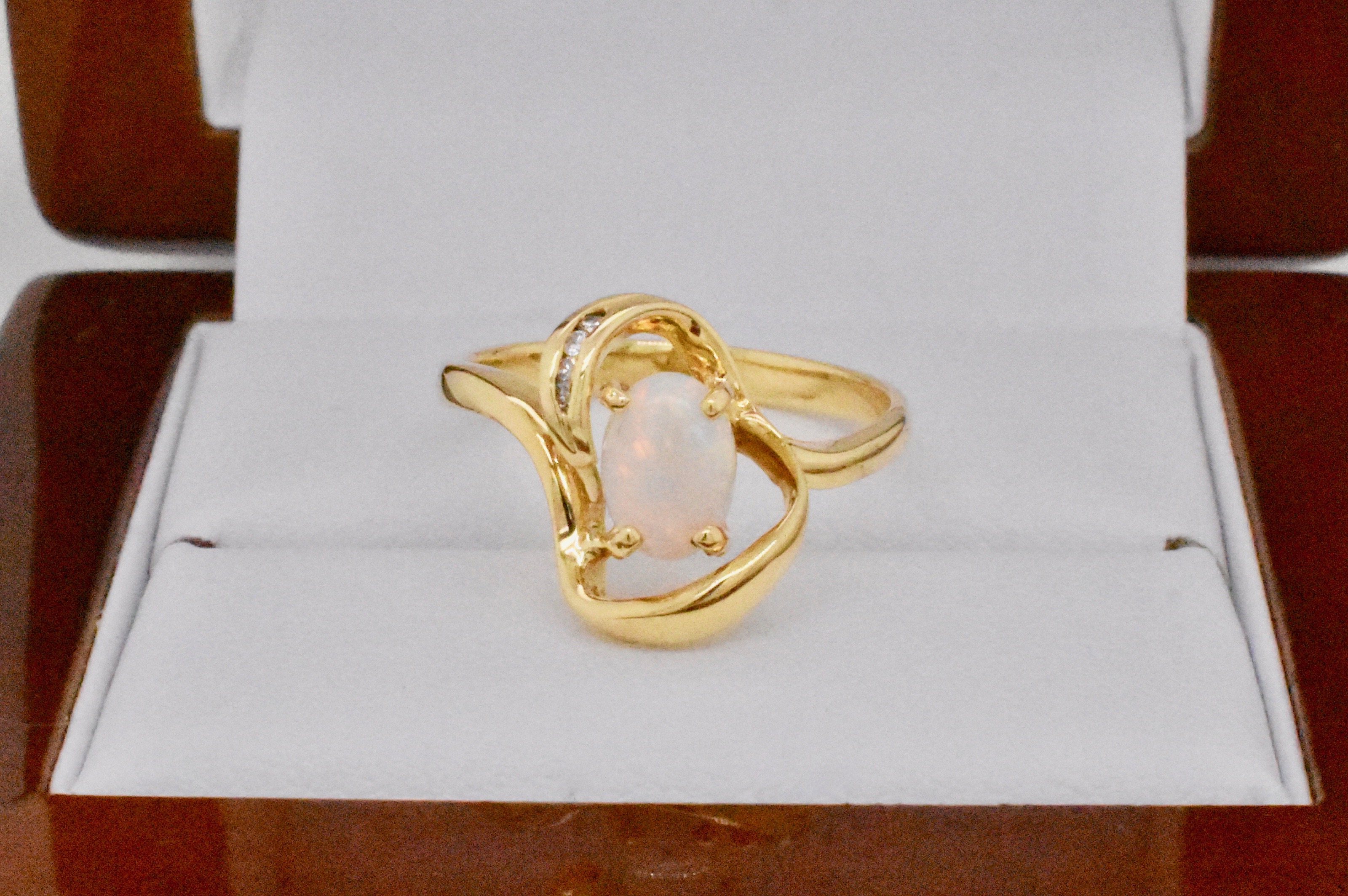 SOLD 18ct Yellow Gold 0.50ct White Opal & 0.02ct Diamond Ring