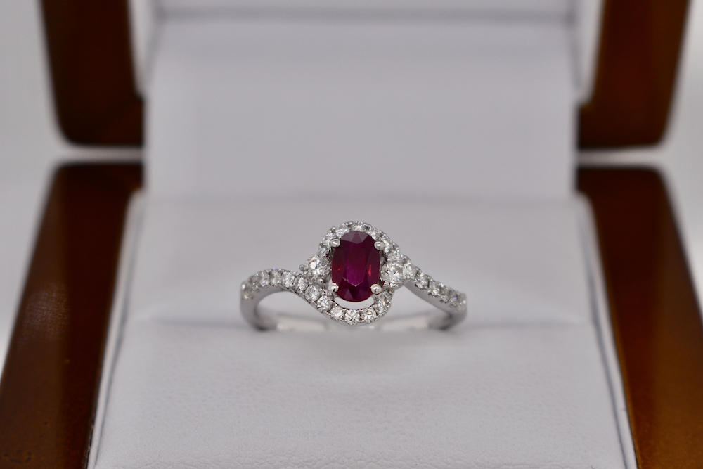 SOLD 18ct White Gold 0.56ct Burmese Ruby & 0.26ct Diamond Halo Ring
