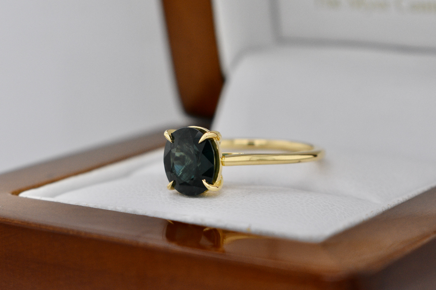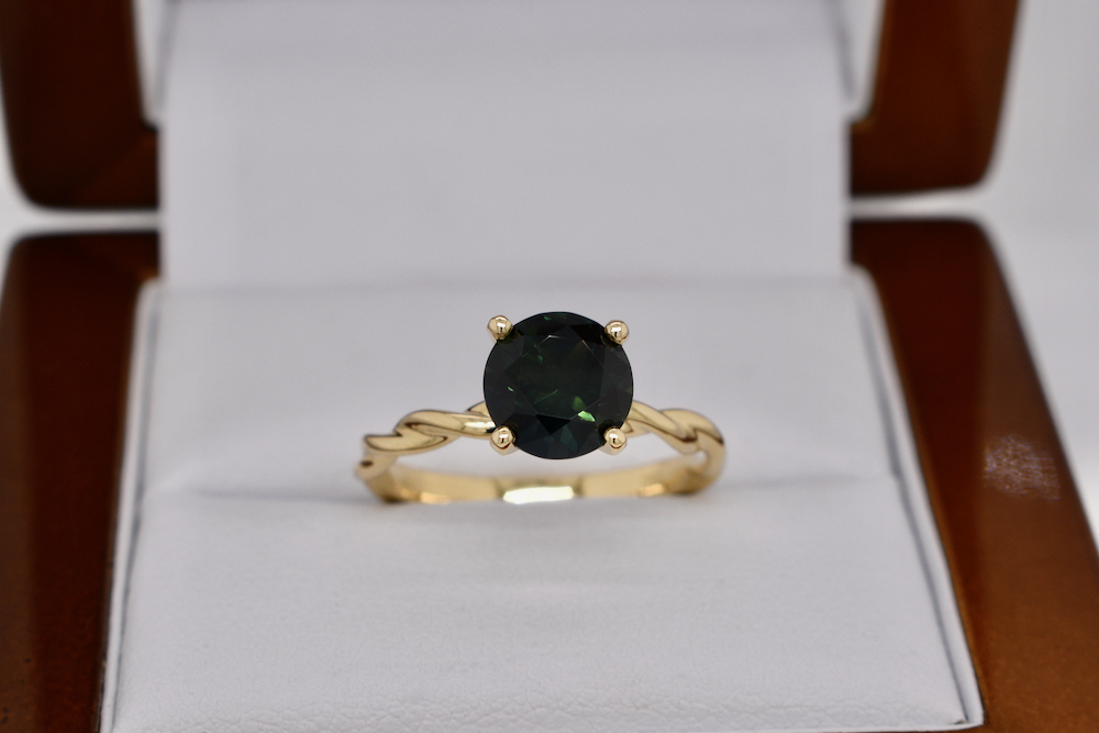 SOLD 18ct Yellow Gold 1.85ct Green/Blue Australian Sapphire Solitaire Ring