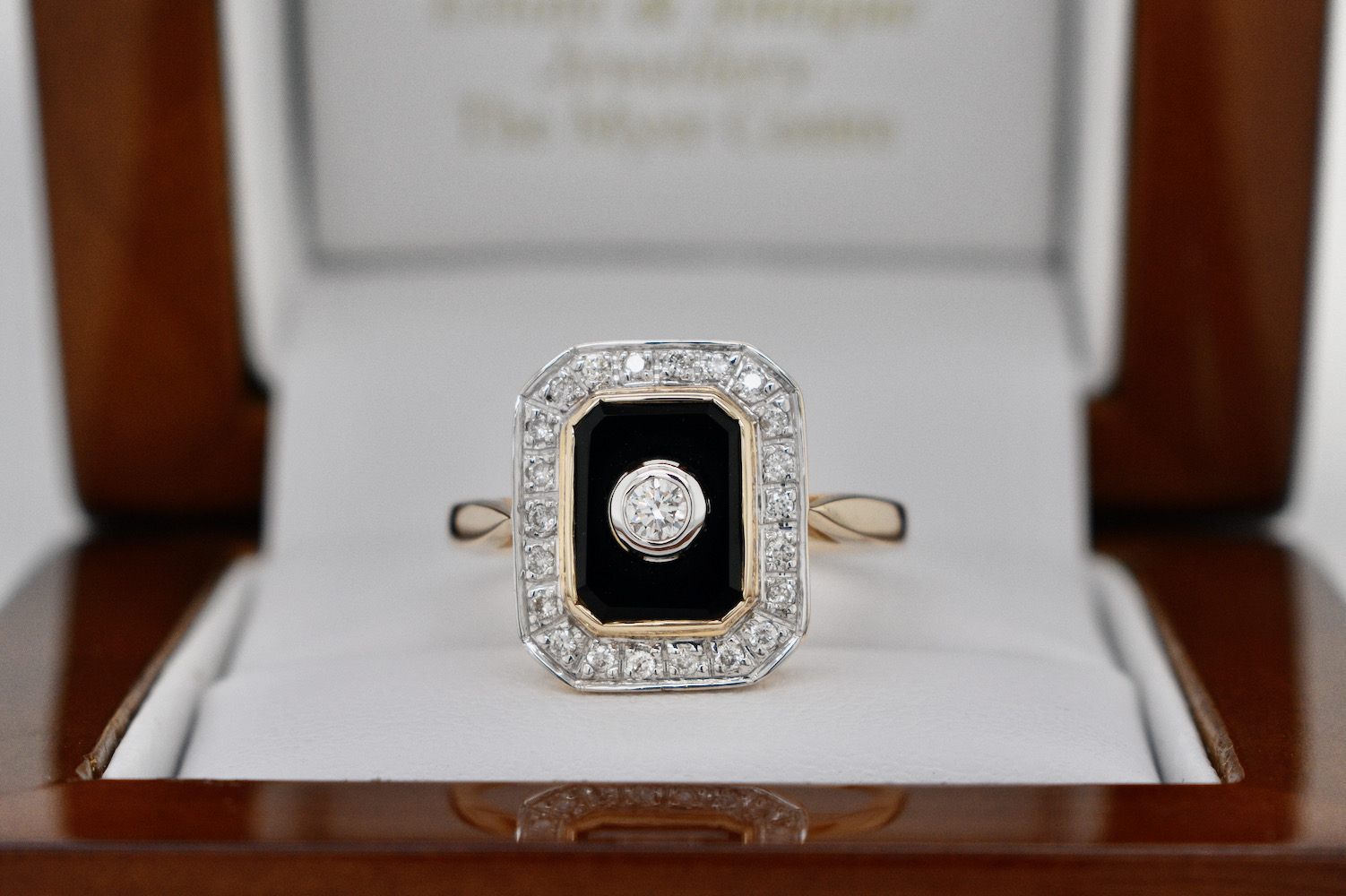 SOLD 9ct Yellow Gold Onyx & Diamond Ring
