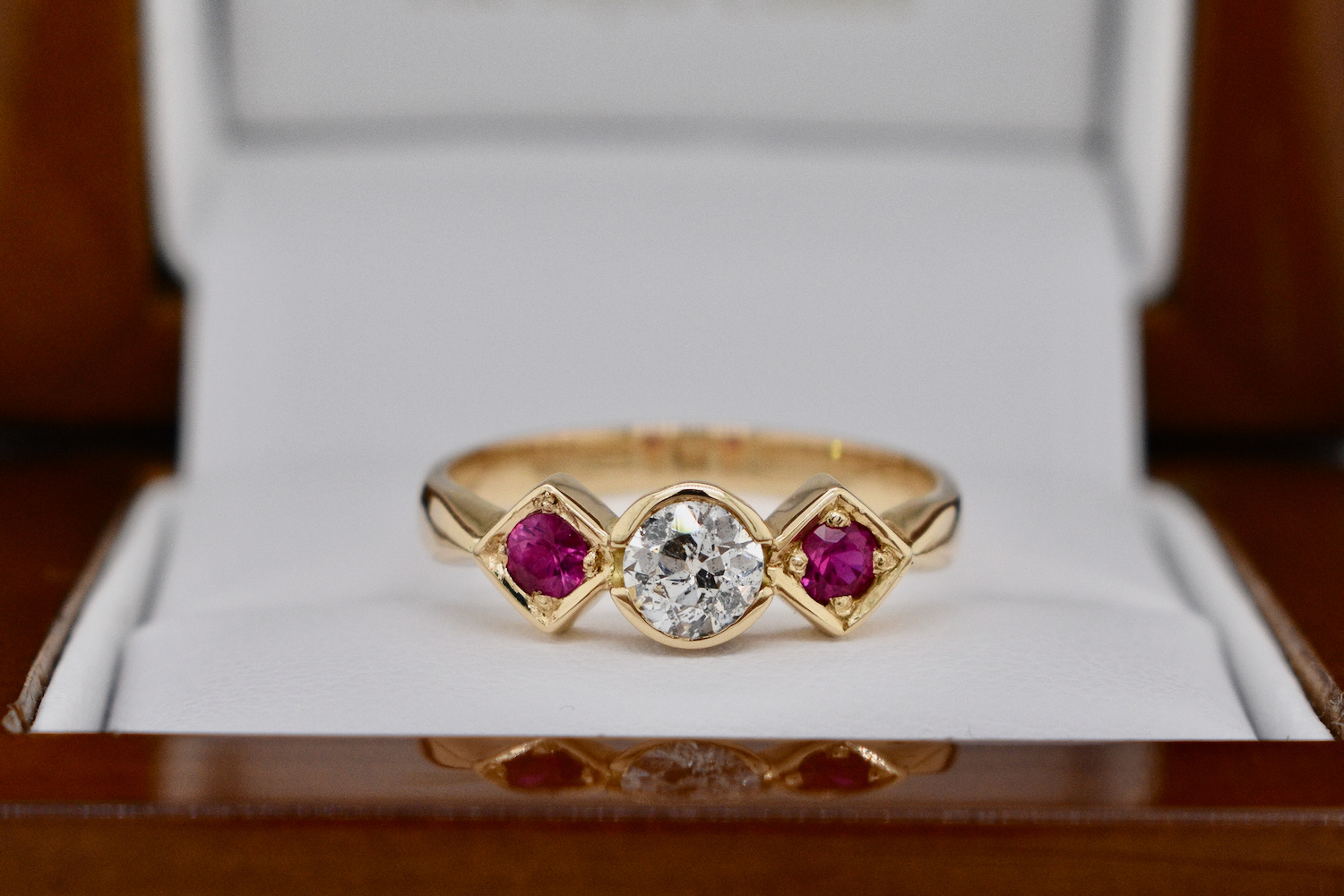 SOLD 18ct Yellow Gold 0.40ct Old European Cut Diamond & 0.25ct Ruby Ring