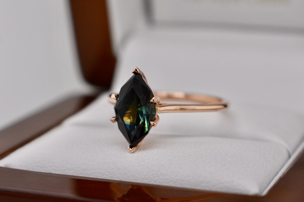 SOLD 18ct Rose Gold 1.33ct Kite Shape Blue/Green Sapphire