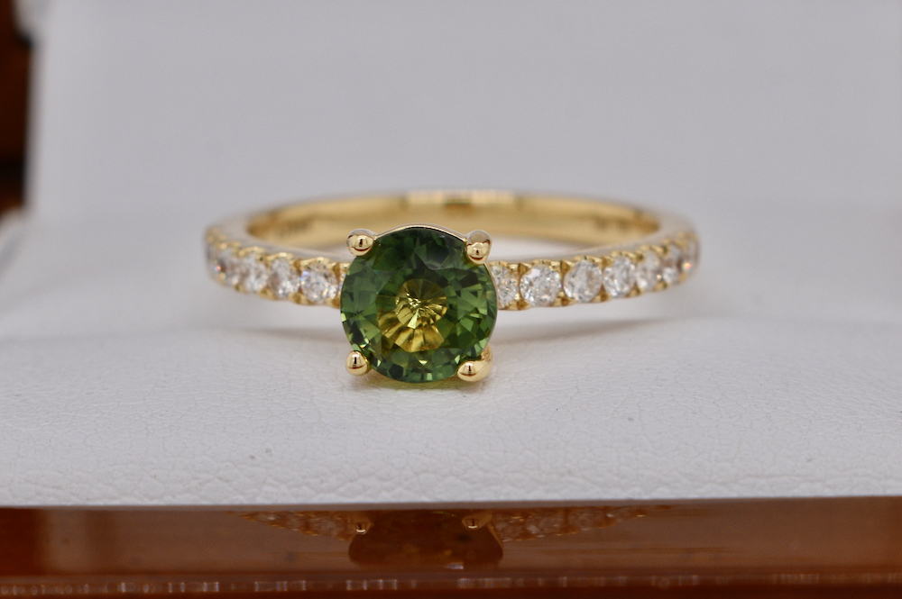SOLD 18ct Yellow Gold 0.97ct Green Sapphire & 0.33ct Diamond Ring