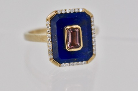 SOLD 9ct Rose Gold Lapis, Tourmaline & Diamond Ring
