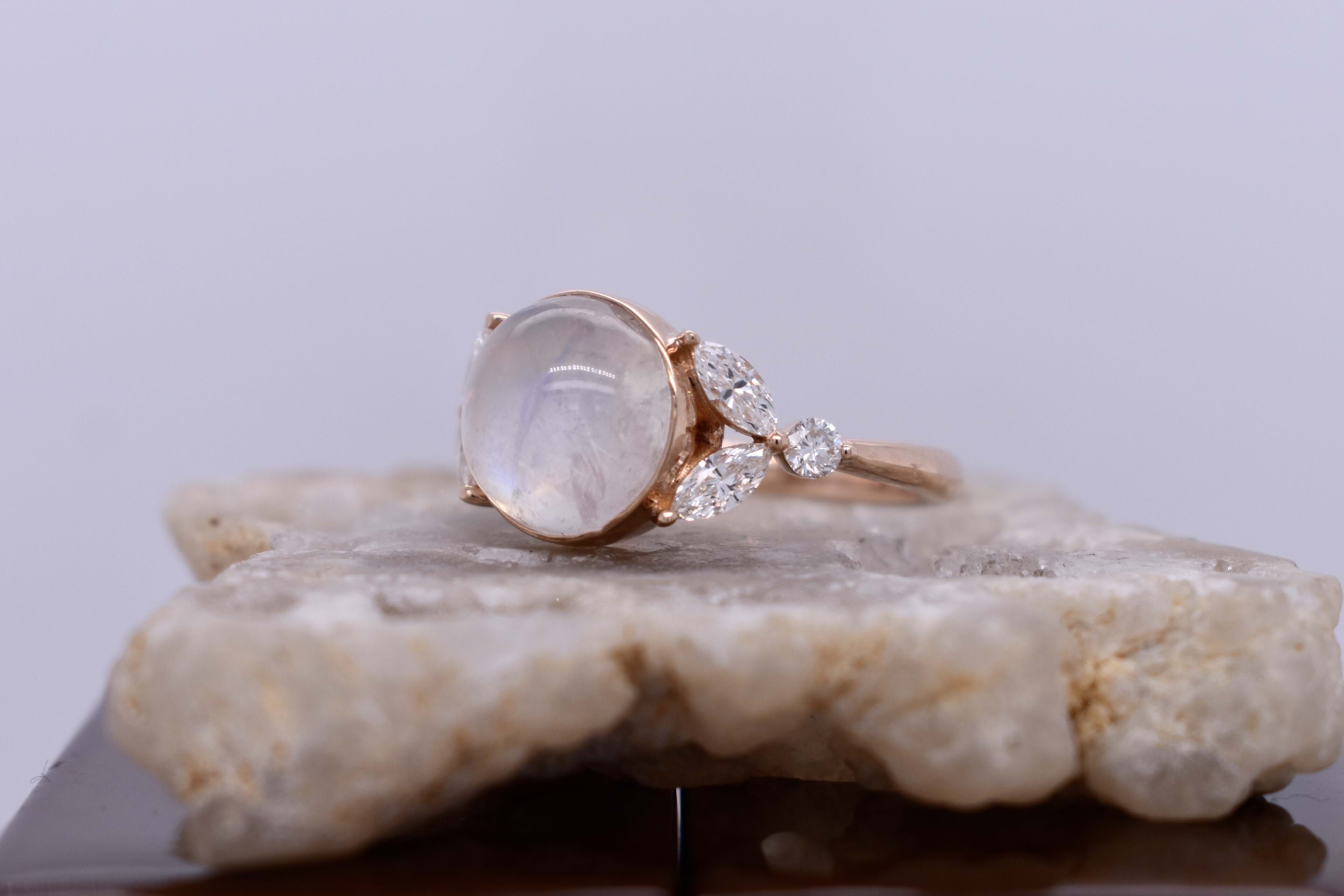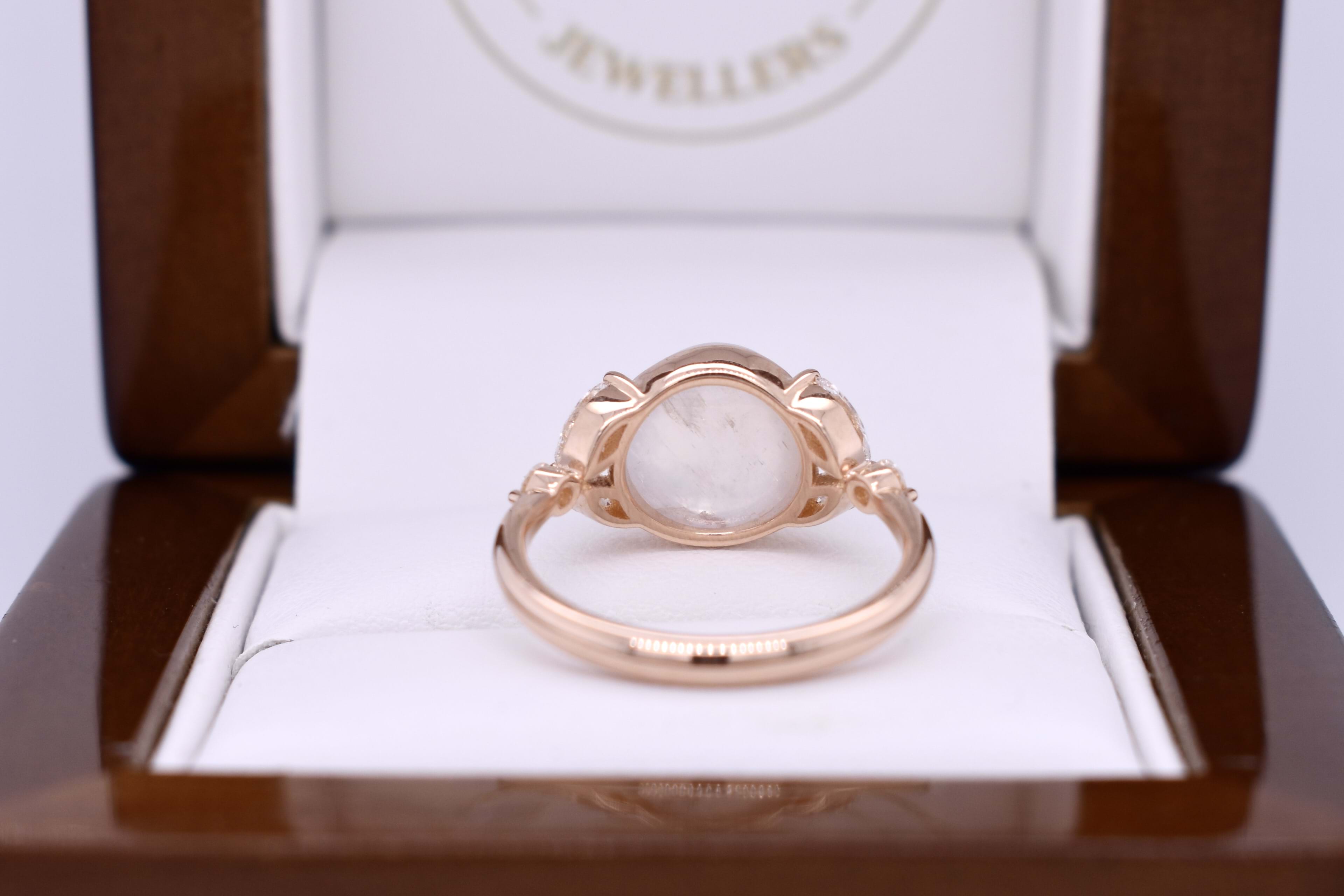 SOLD 18ct Rose Gold 3.67ct Moonstone Cabochon & 0.45ct Diamond Ring (L)