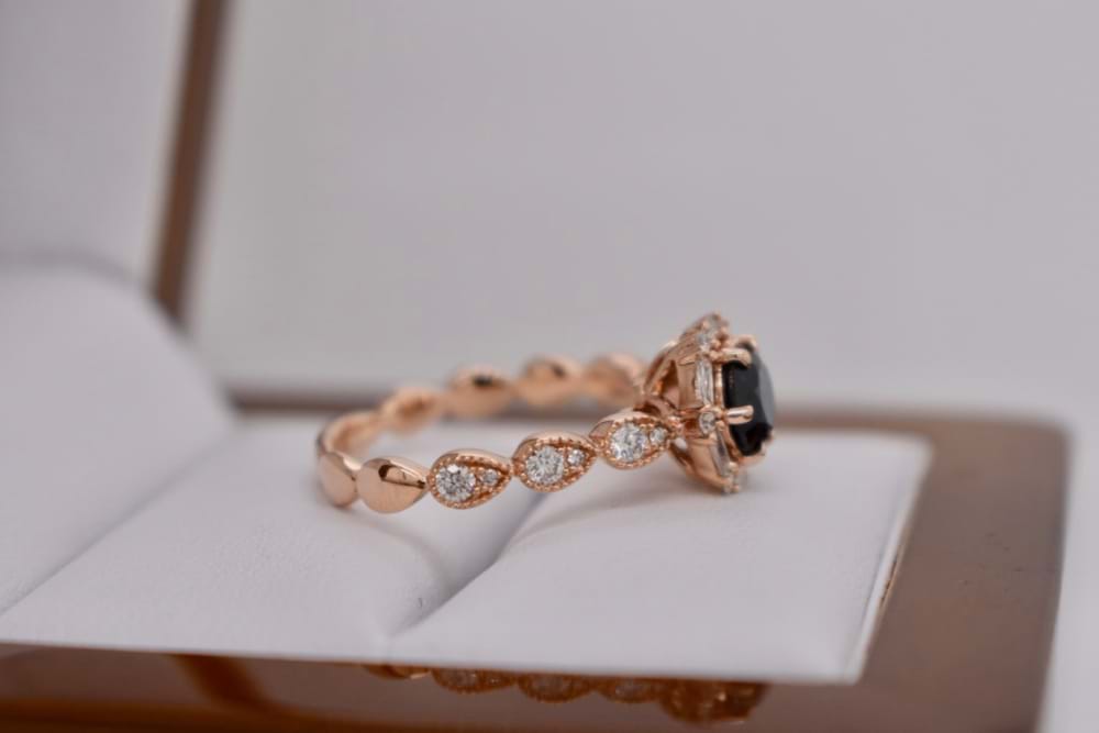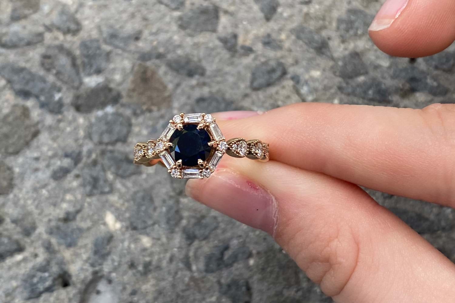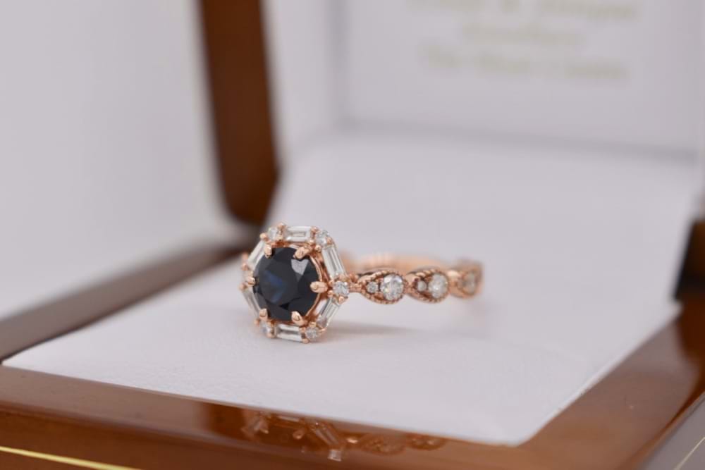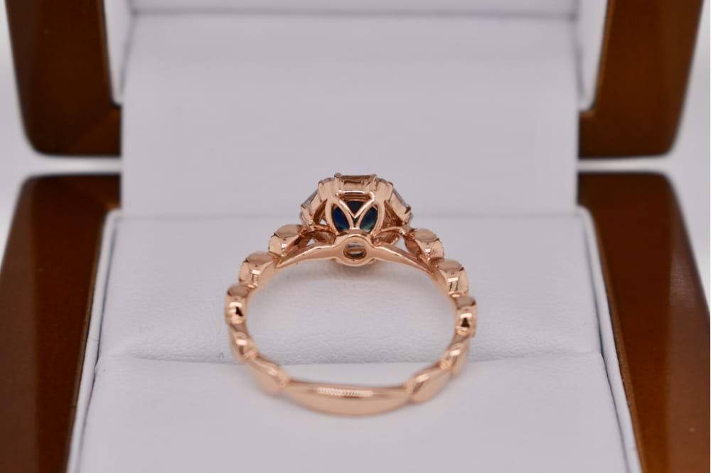 SOLD 18ct Rose Gold Australian Blue Sapphire Hexagonal Halo Ring