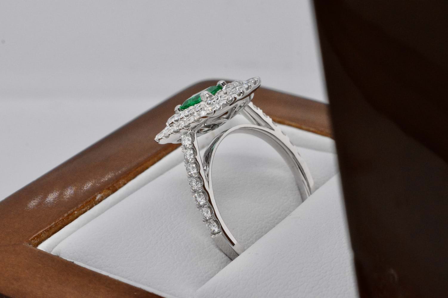 SOLD 18ct White Gold 0.30ct Colombian Emerald & 0.92ct Diamond Ring